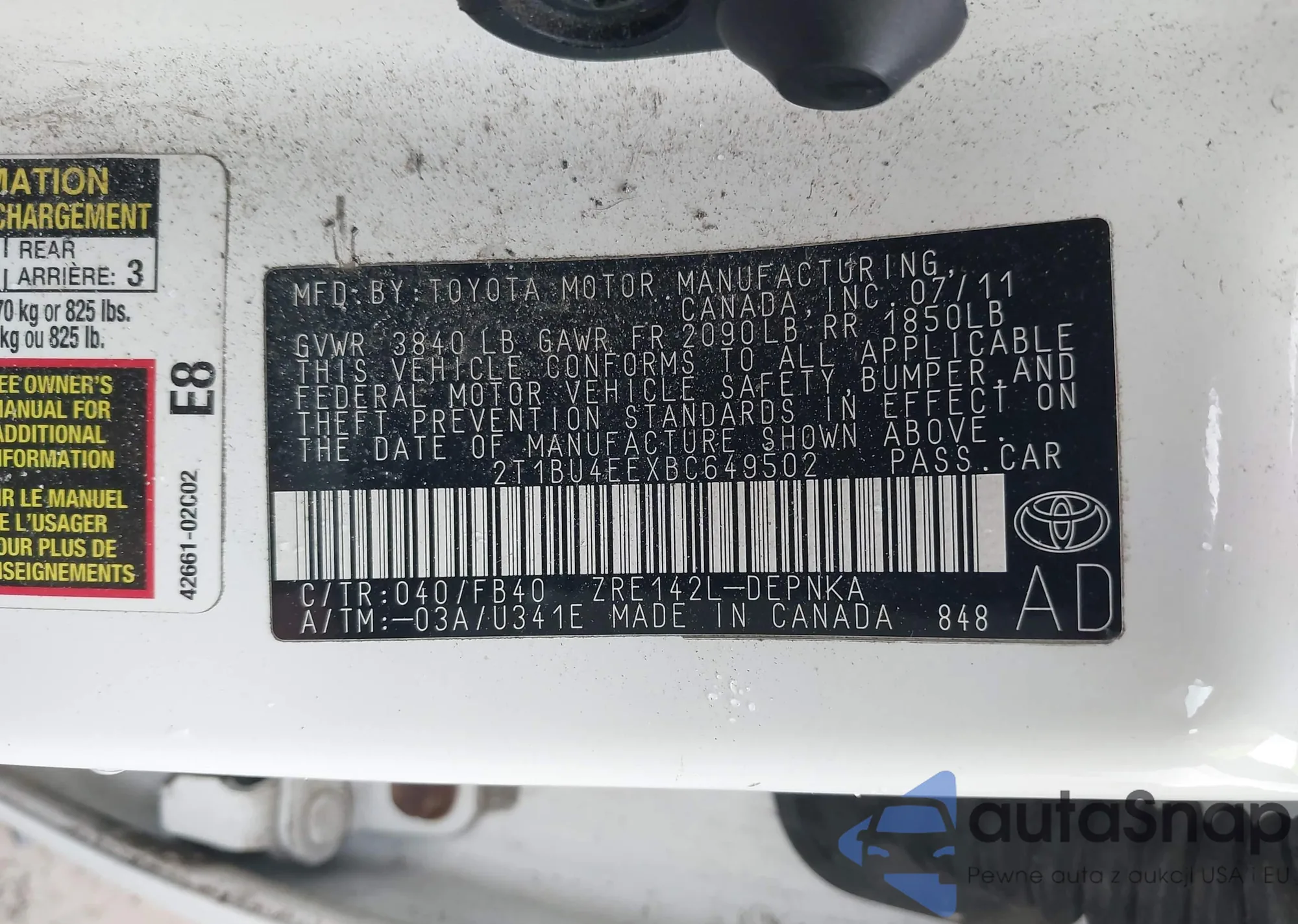 VIN: 2T1BU4EEXBC649502