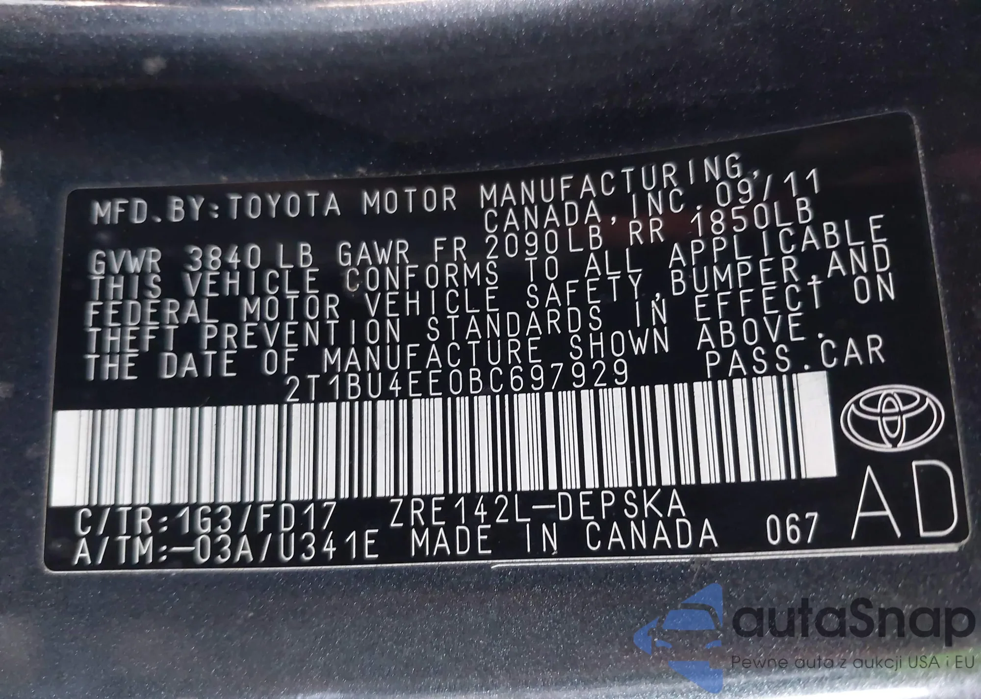 The car Toyota Corolla 2011 (VIN 2T1BU4EE0BC697929) has not been auctioned before. The documents are clean, and the mileage matches or is below the market average. Sold by an insurance company – we recommend purchase. Delivery to the port will take approx. 6–8 weeks.