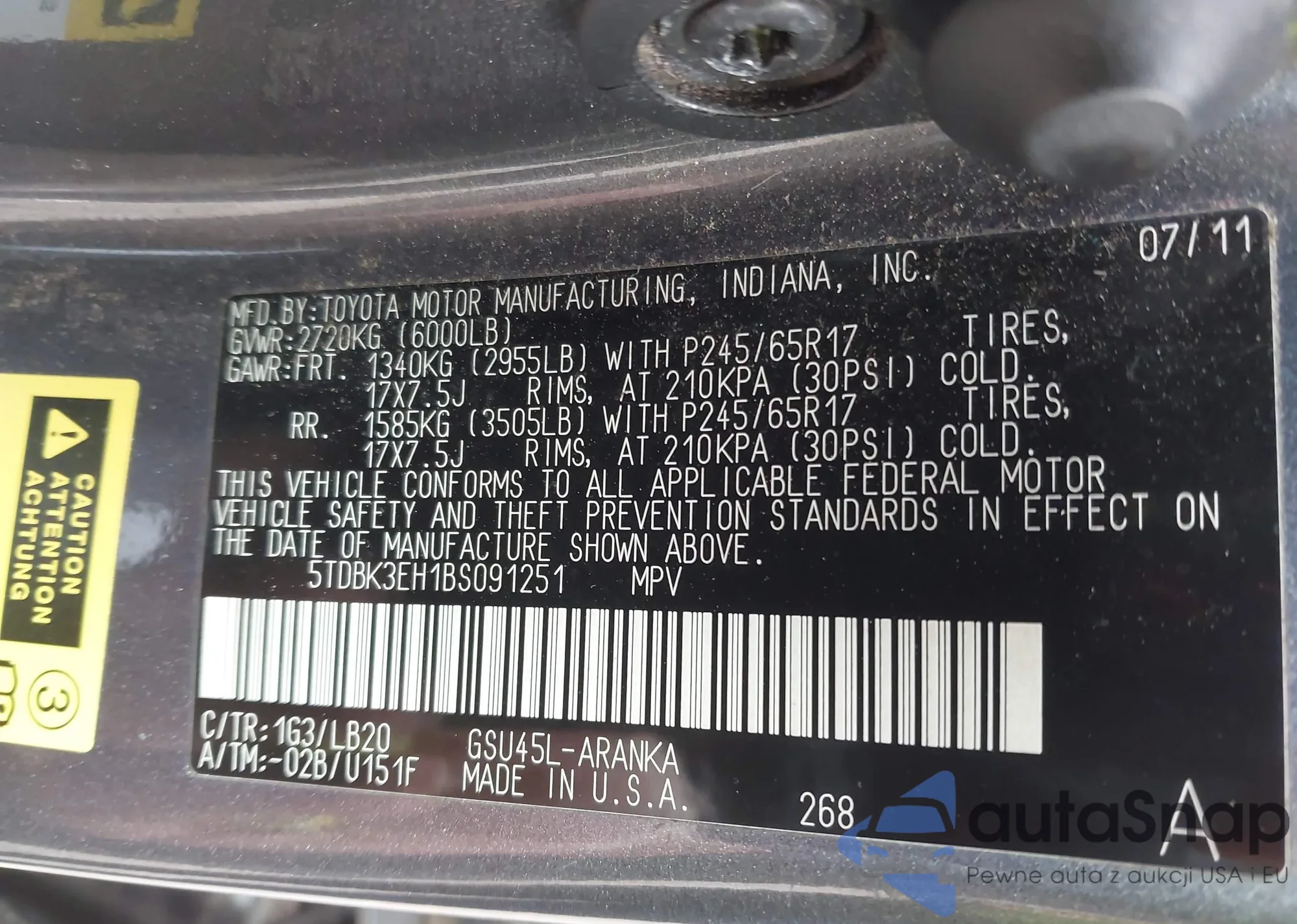 VIN: 5TDBK3EH1BS091251