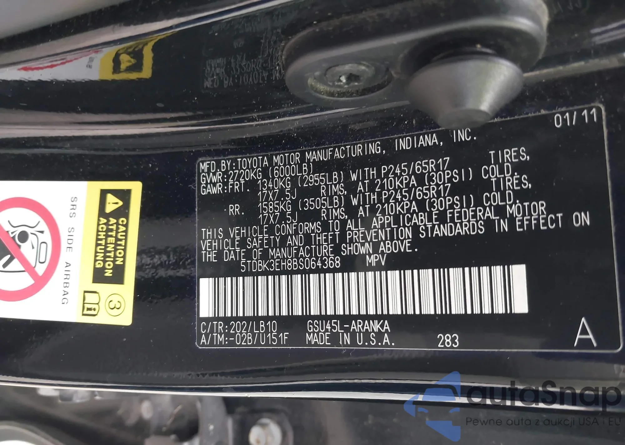 • VIN: 5TDBK3EH8BS064368