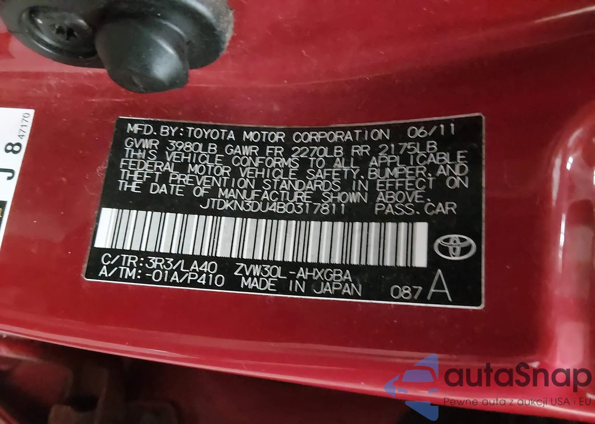 The car Toyota Prius 2011 (VIN JTDKN3DU4B0317811) has not been auctioned before. The documents are clean, and the mileage matches or is below the market average. Sold by an insurance company – we recommend purchase. Delivery to the port will take approx. 6–8 weeks.