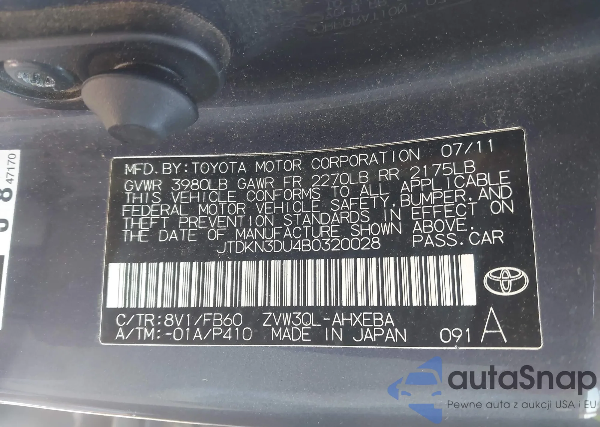 VIN: JTDKN3DU4B0320028
