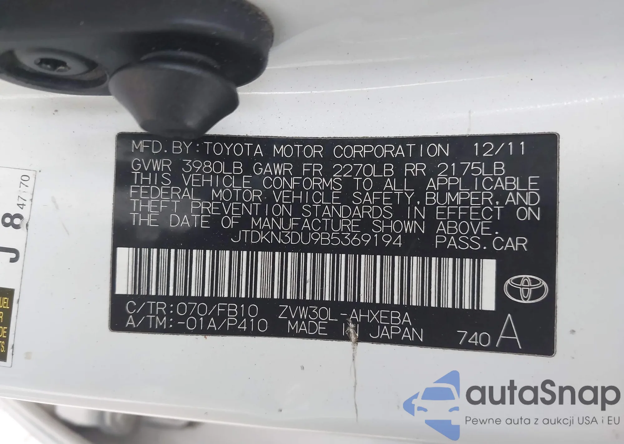 VIN: JTDKN3DU9B5369194