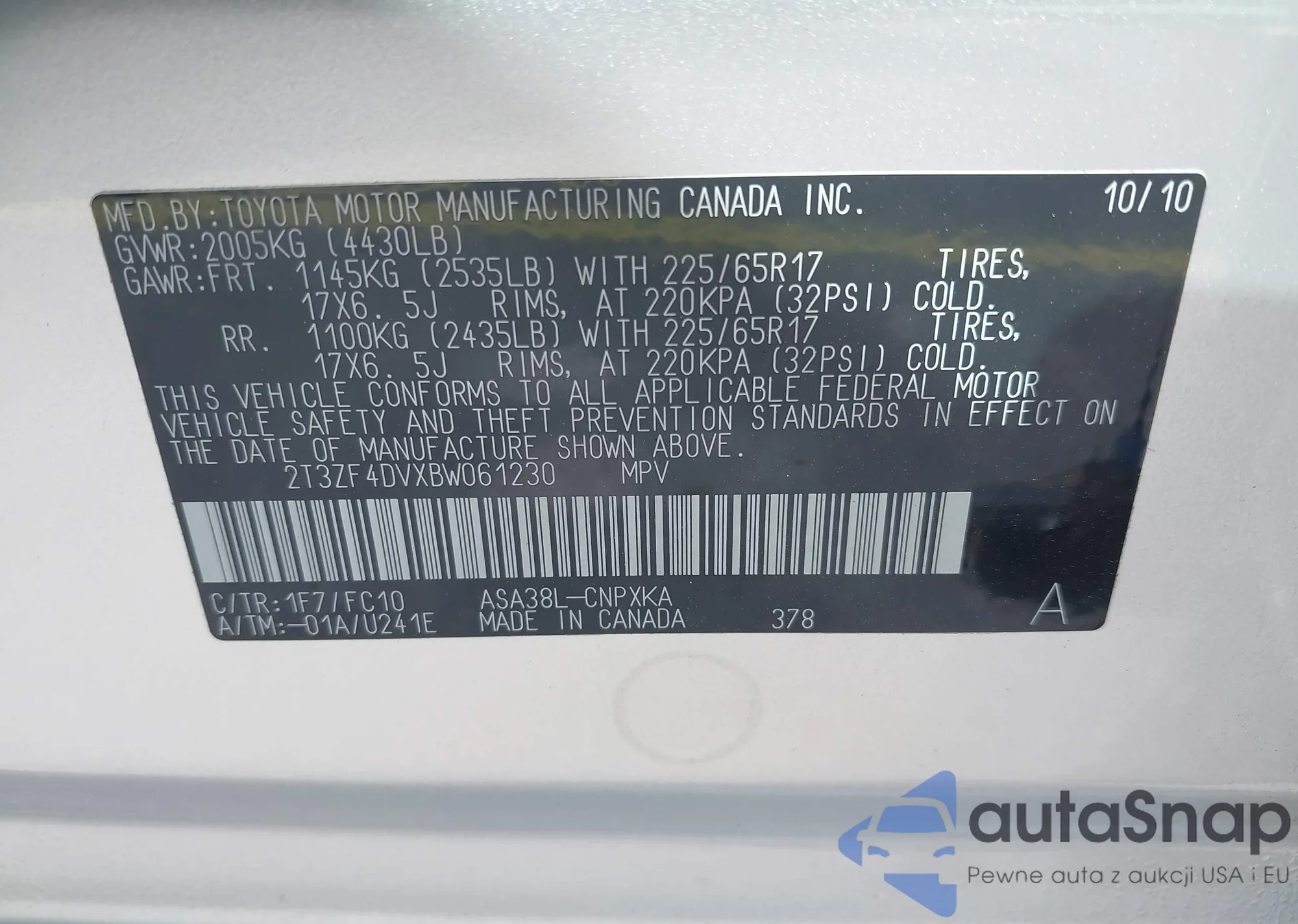 VIN: 2T3ZF4DVXBW061230