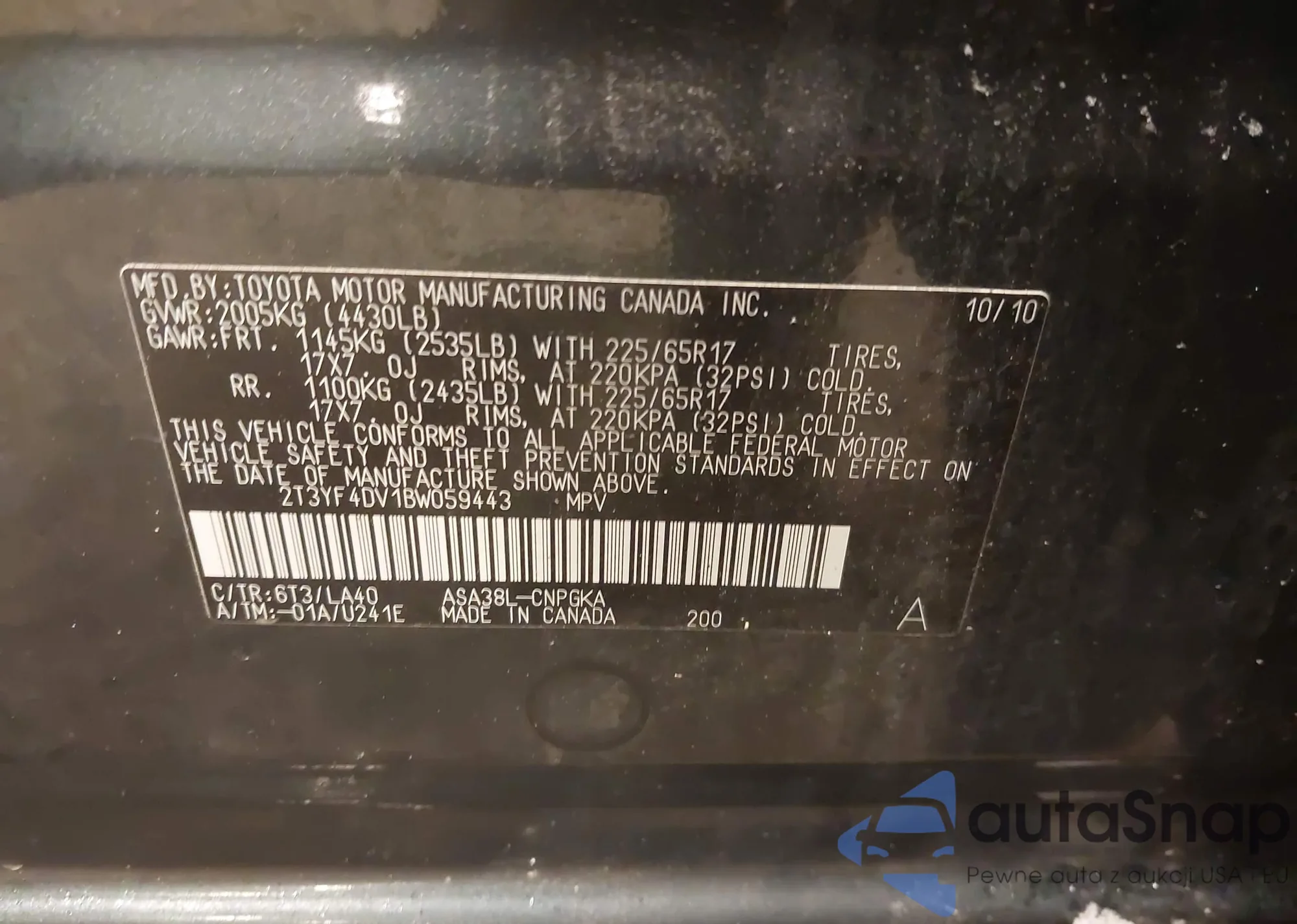 VIN: 2T3YF4DV1BW059443