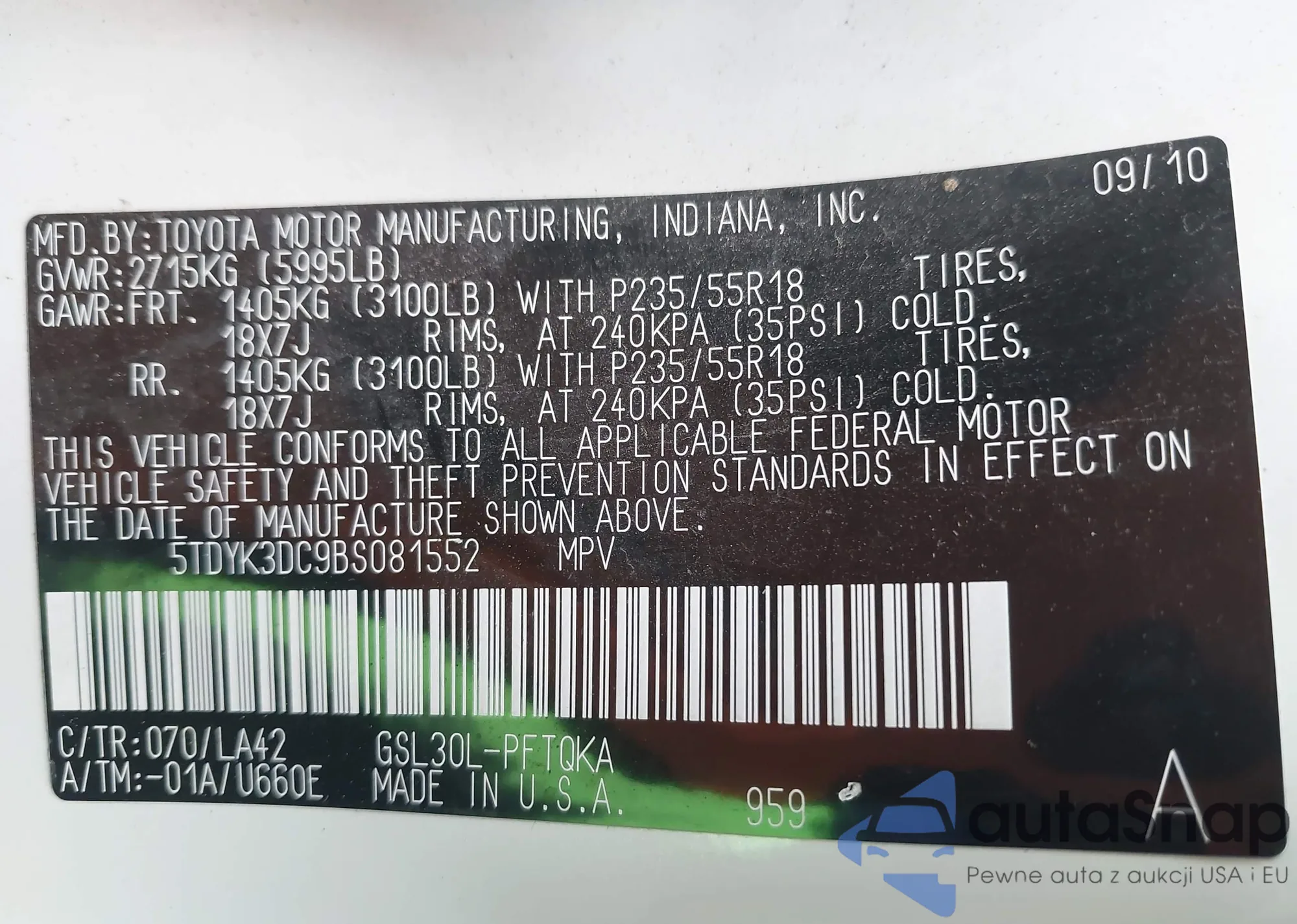 VIN: 5TDYK3DC9BS081552