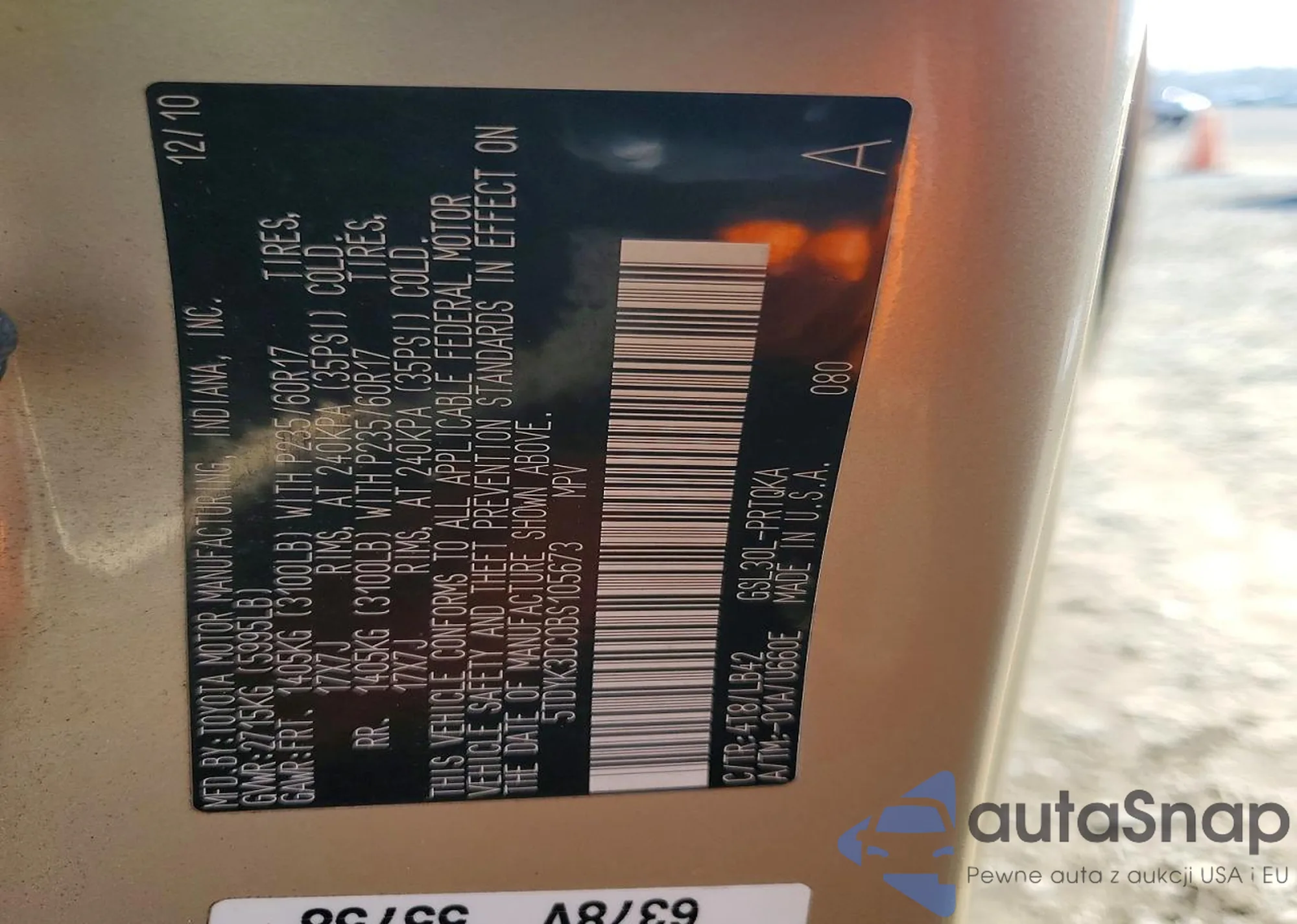 Toyota Sienna 2011 – Vehicle History (Sold at COPART)