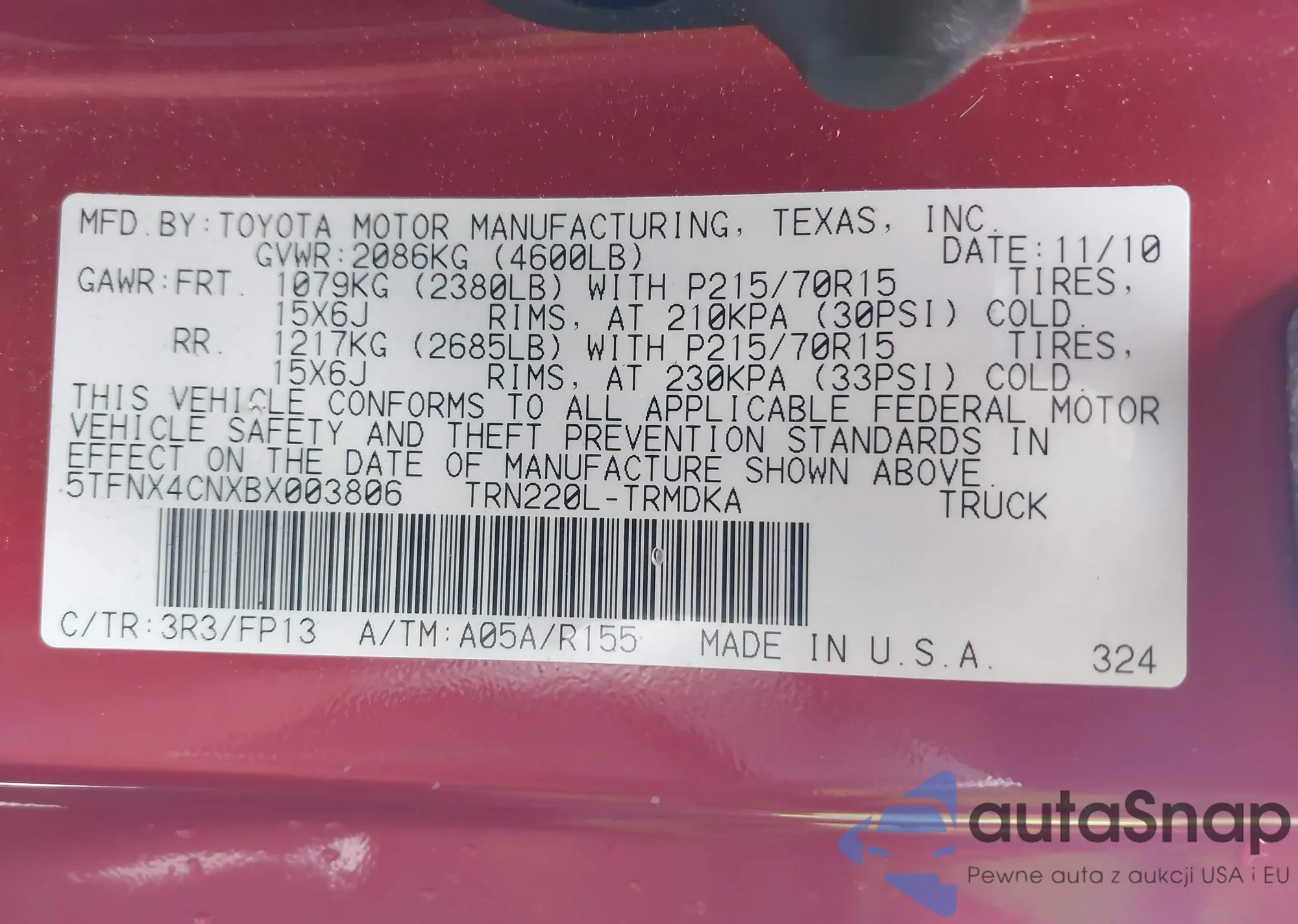 VIN: 5TFNX4CNXBX003806
