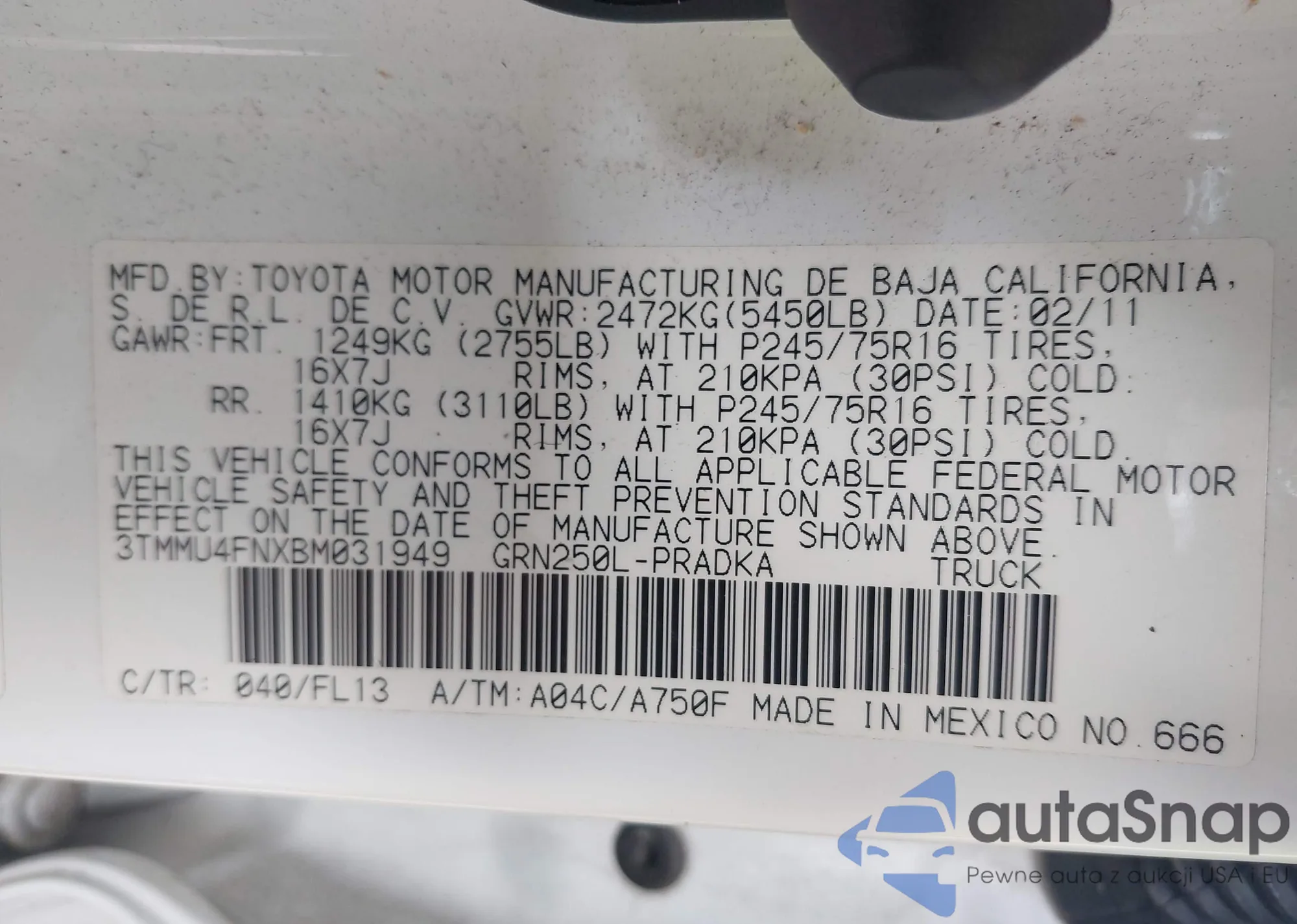 VIN: 3TMMU4FNXBM031949