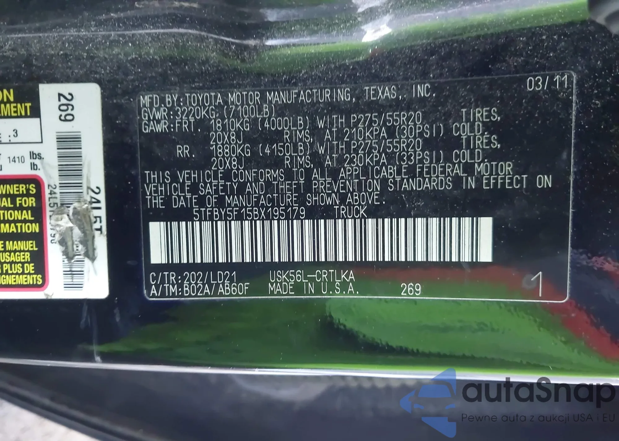 VIN: 5TFBY5F15BX195179