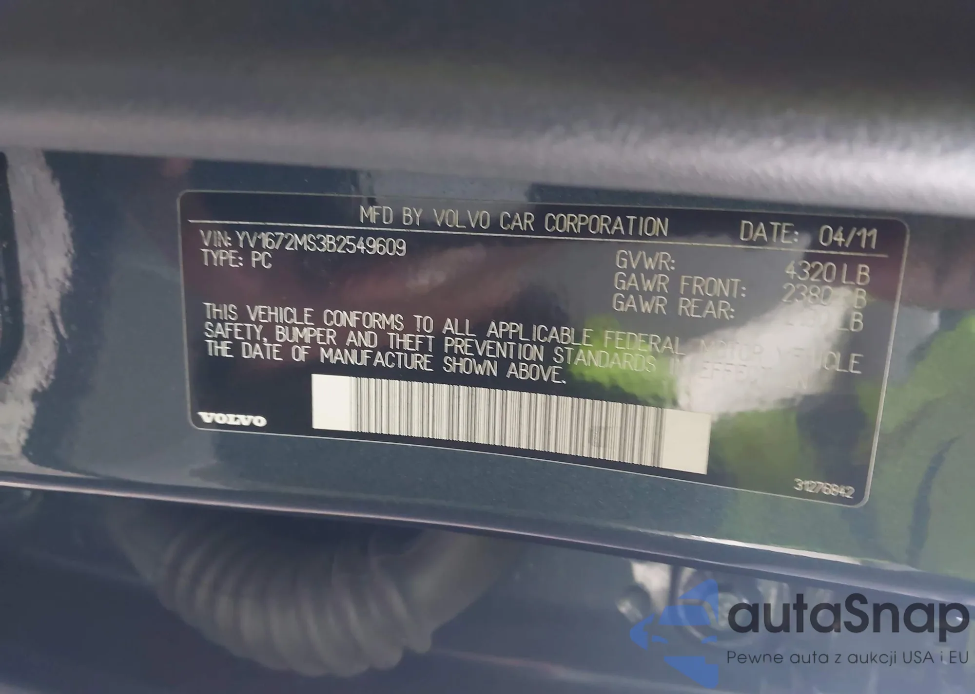 VIN: YV1672MS3B2549609