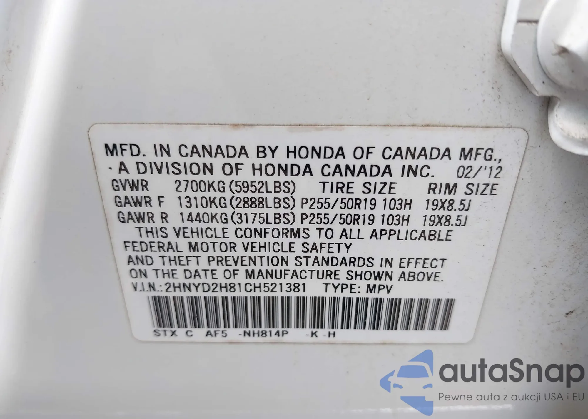 • VIN: 2HNYD2H81CH521381