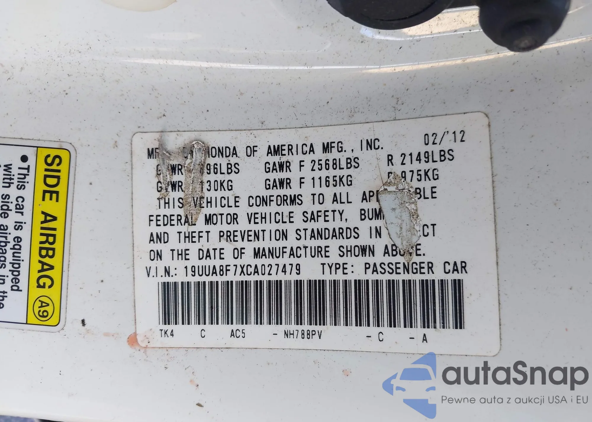 • VIN: 19UUA8F7XCA027479