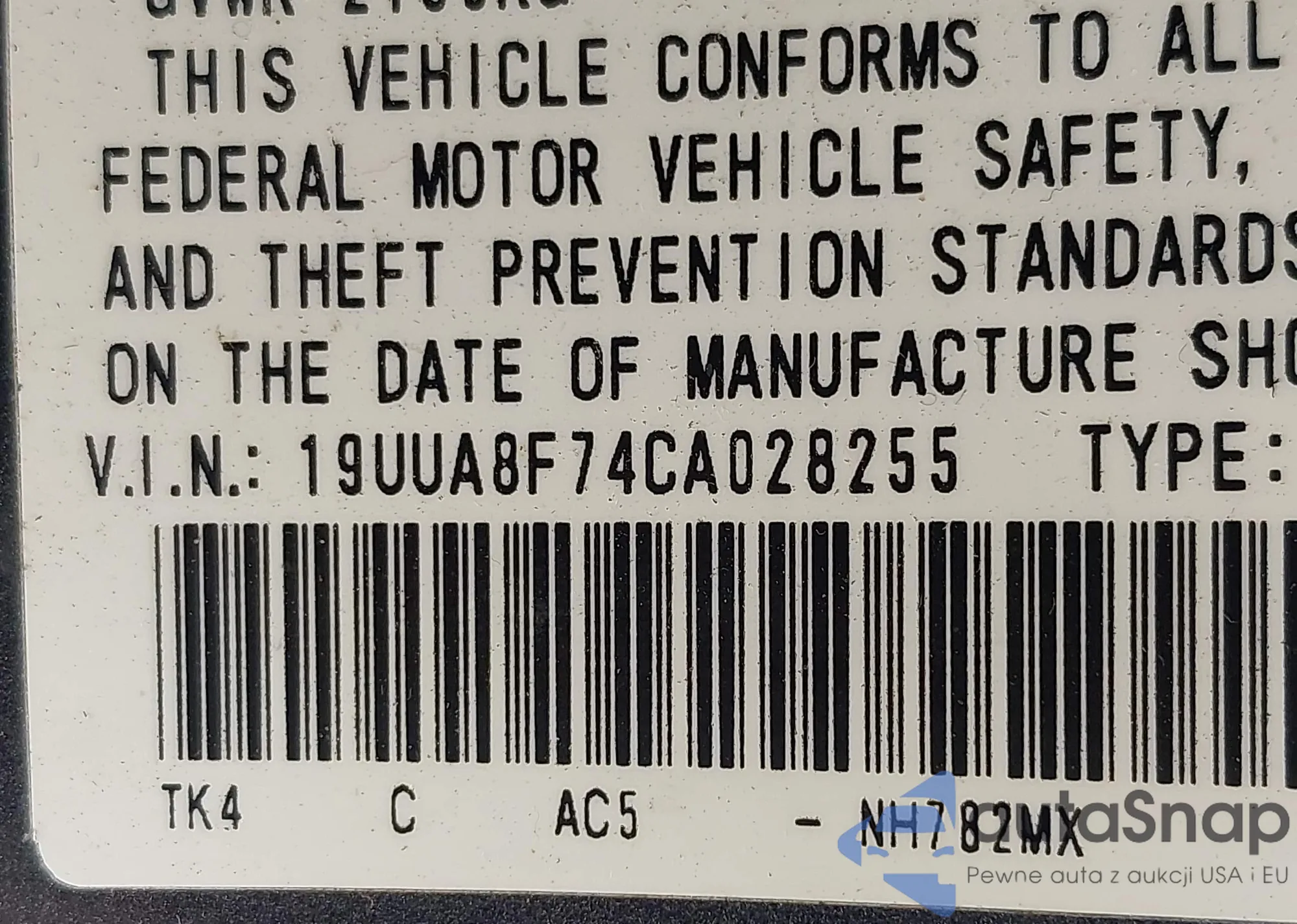VIN: 19UUA8F74CA028255
