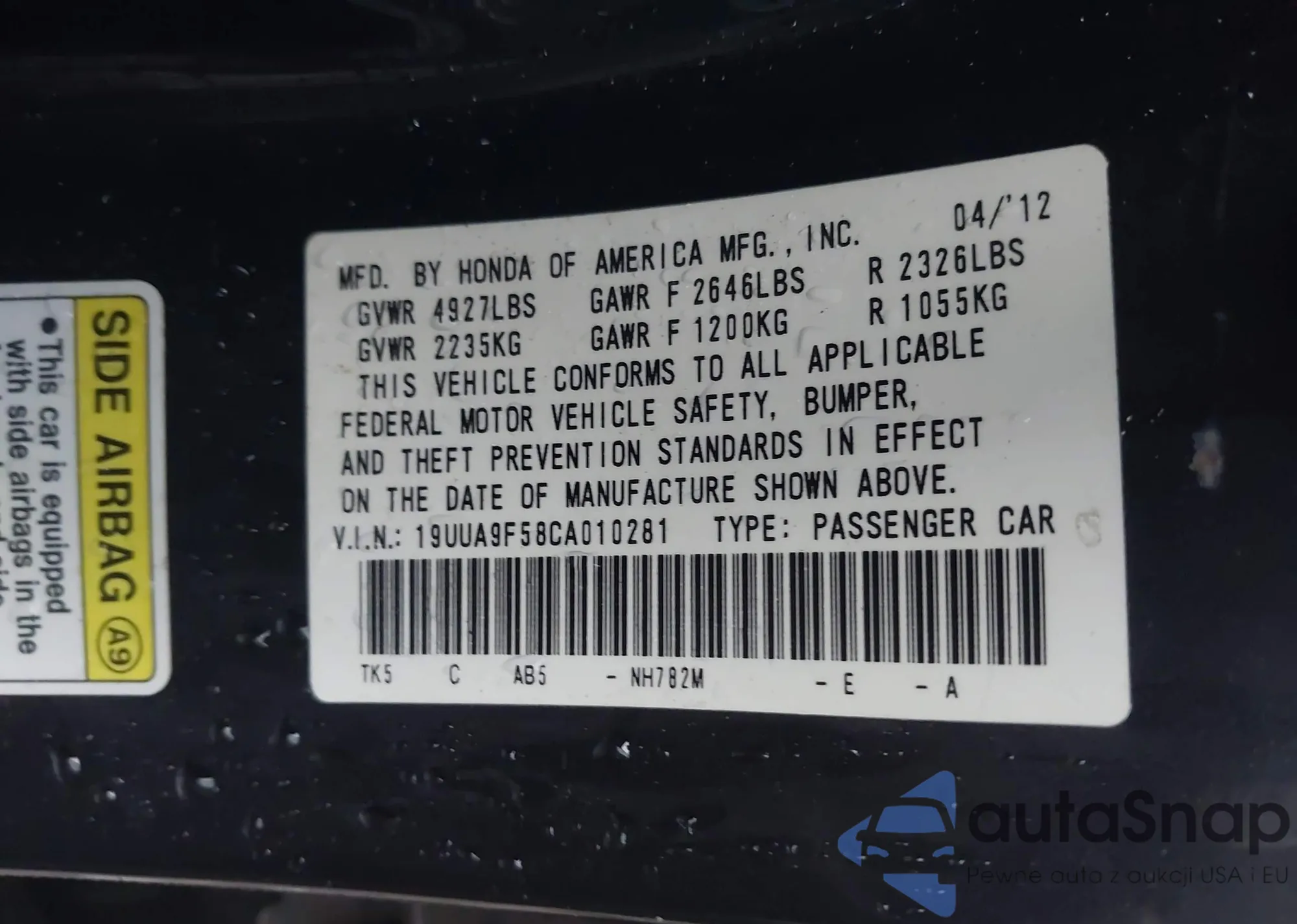 VIN: 19UUA9F58CA010281