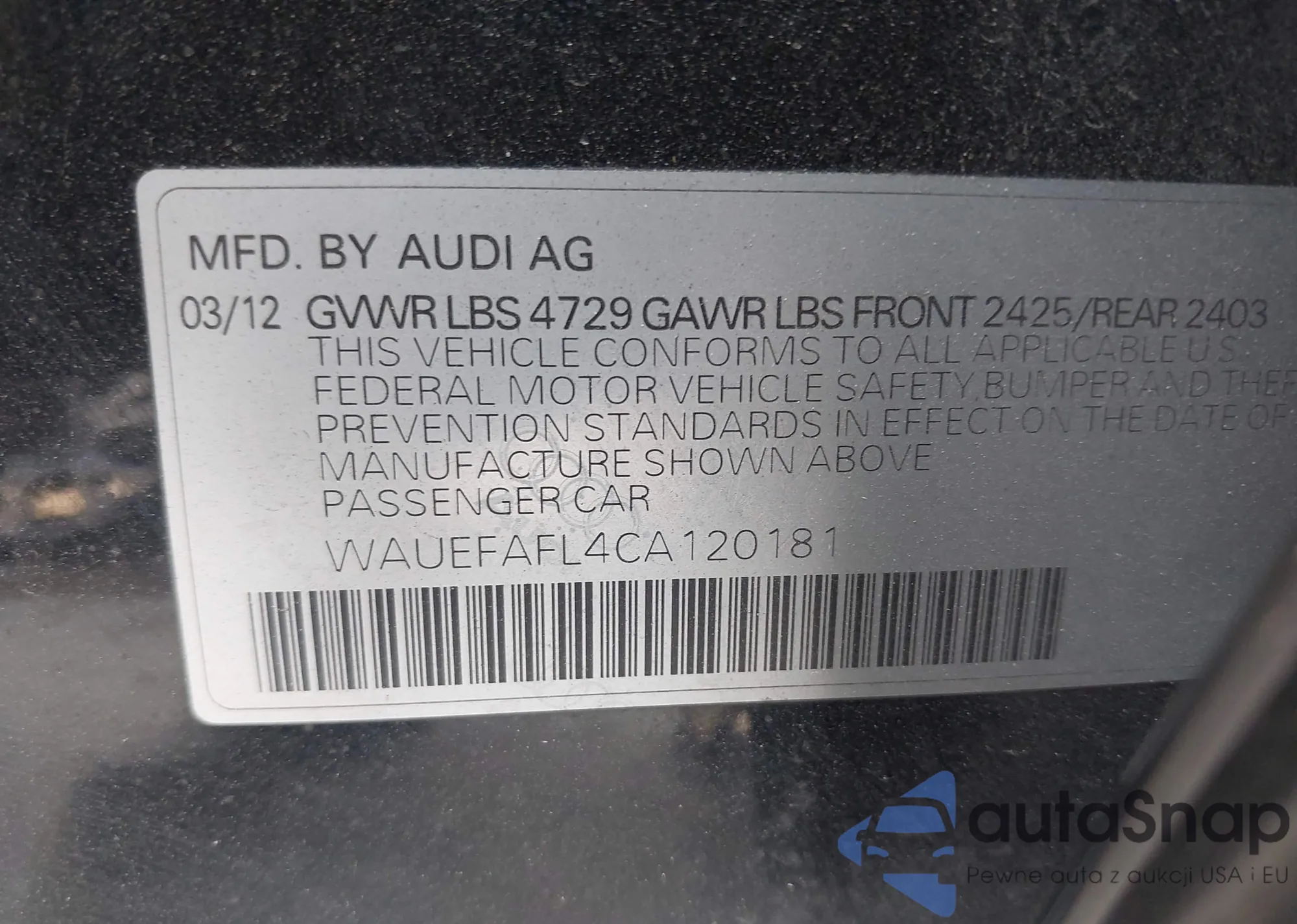 • VIN: WAUEFAFL4CA120181