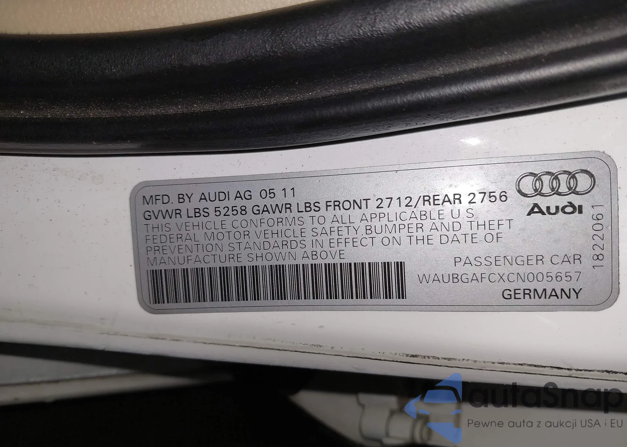 • VIN: WAUBGAFCXCN005657