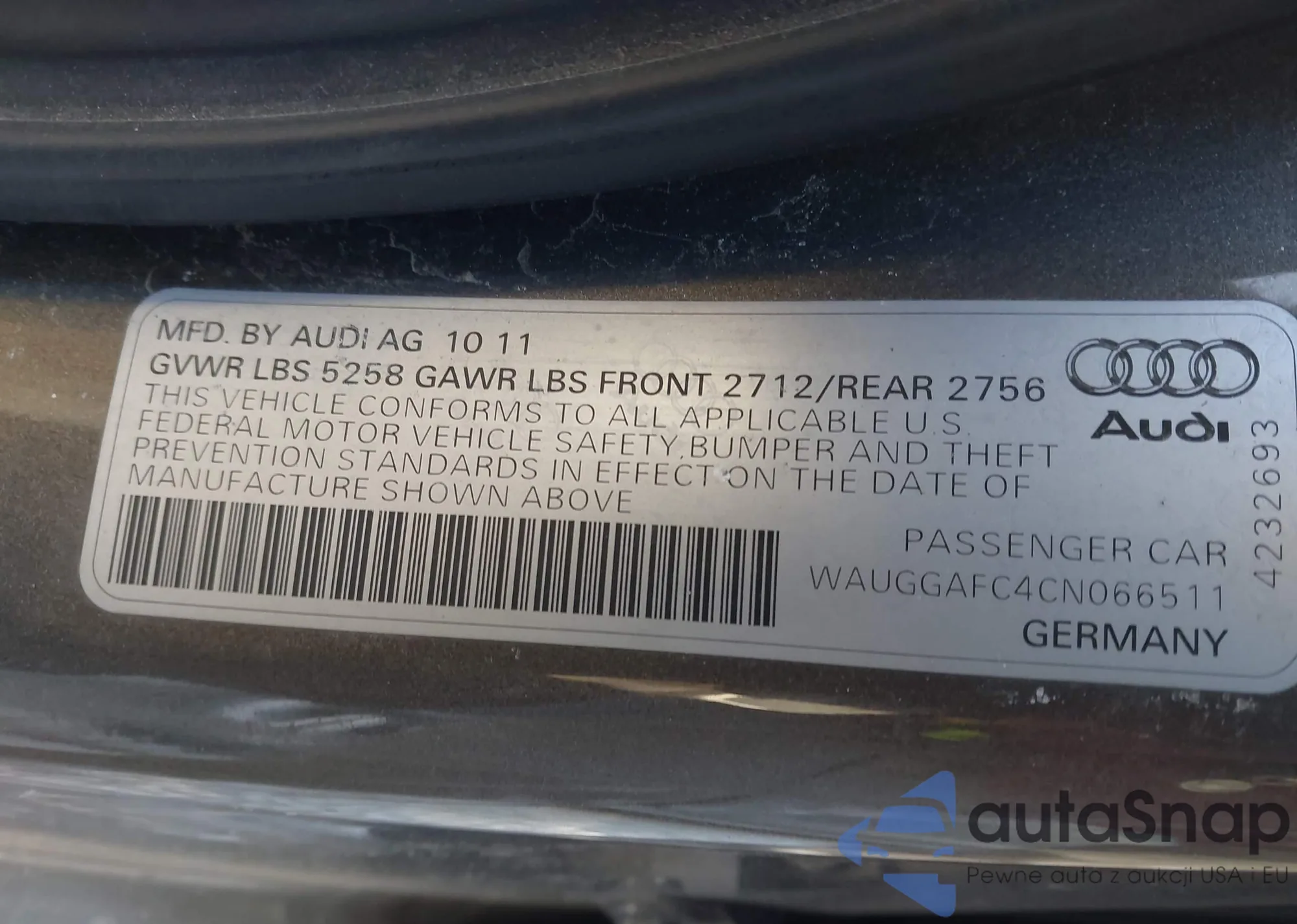 • VIN: WAUGGAFC4CN066511