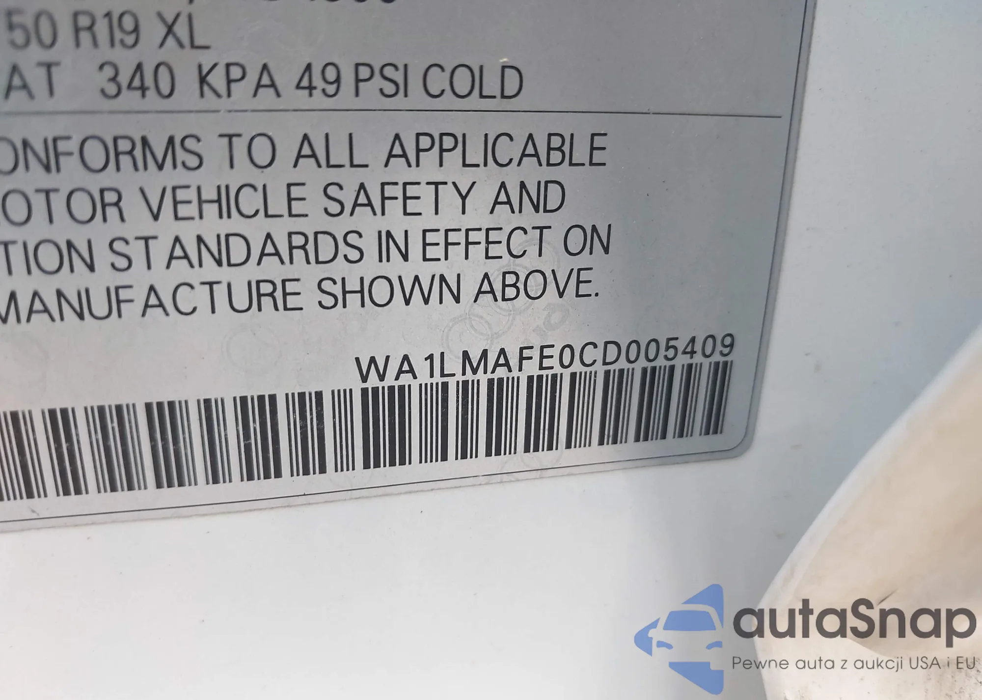 • VIN: WA1LMAFE0CD005409