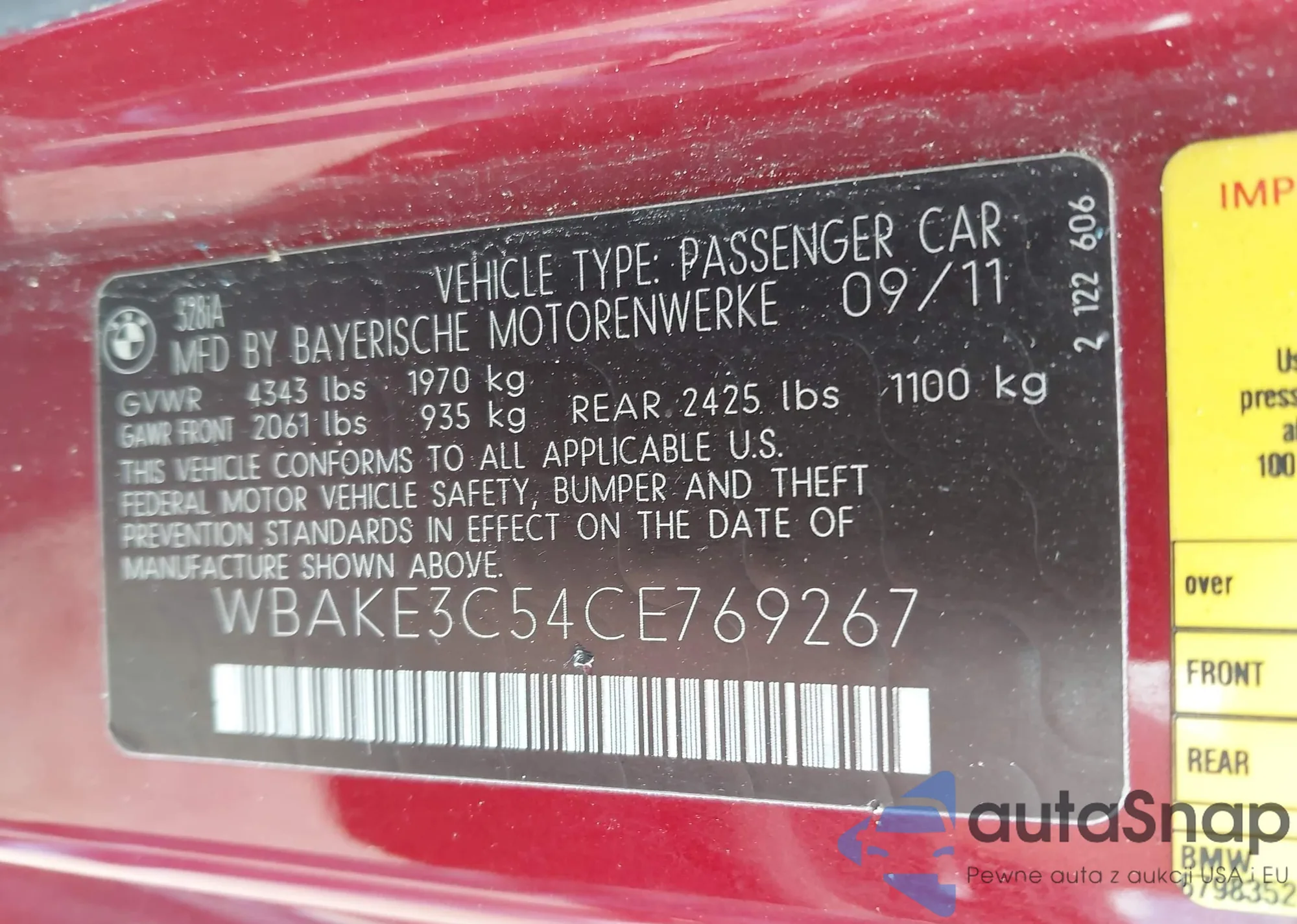 VIN: WBAKE3C54CE769267