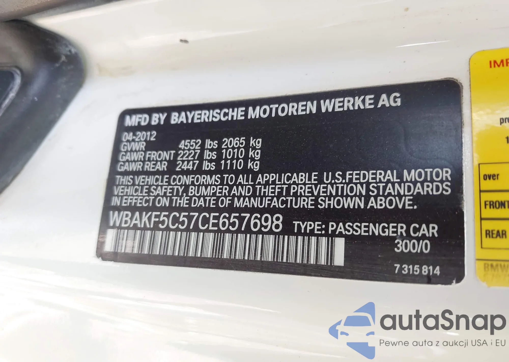 VIN: WBAKF5C57CE657698