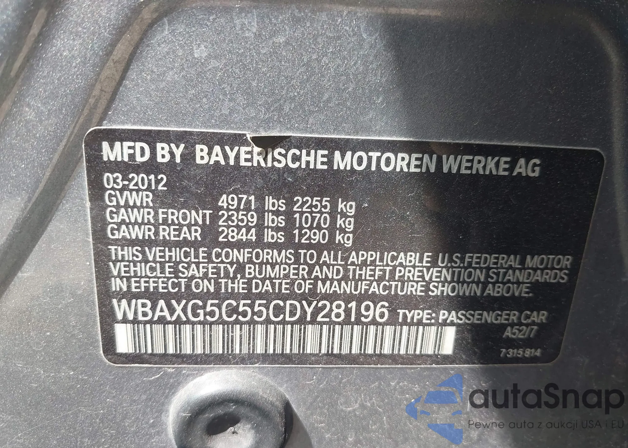 • VIN: WBAXG5C55CDY28196