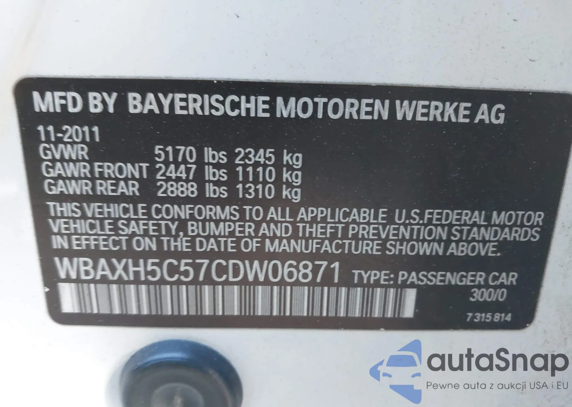 VIN: WBAXH5C57CDW06871