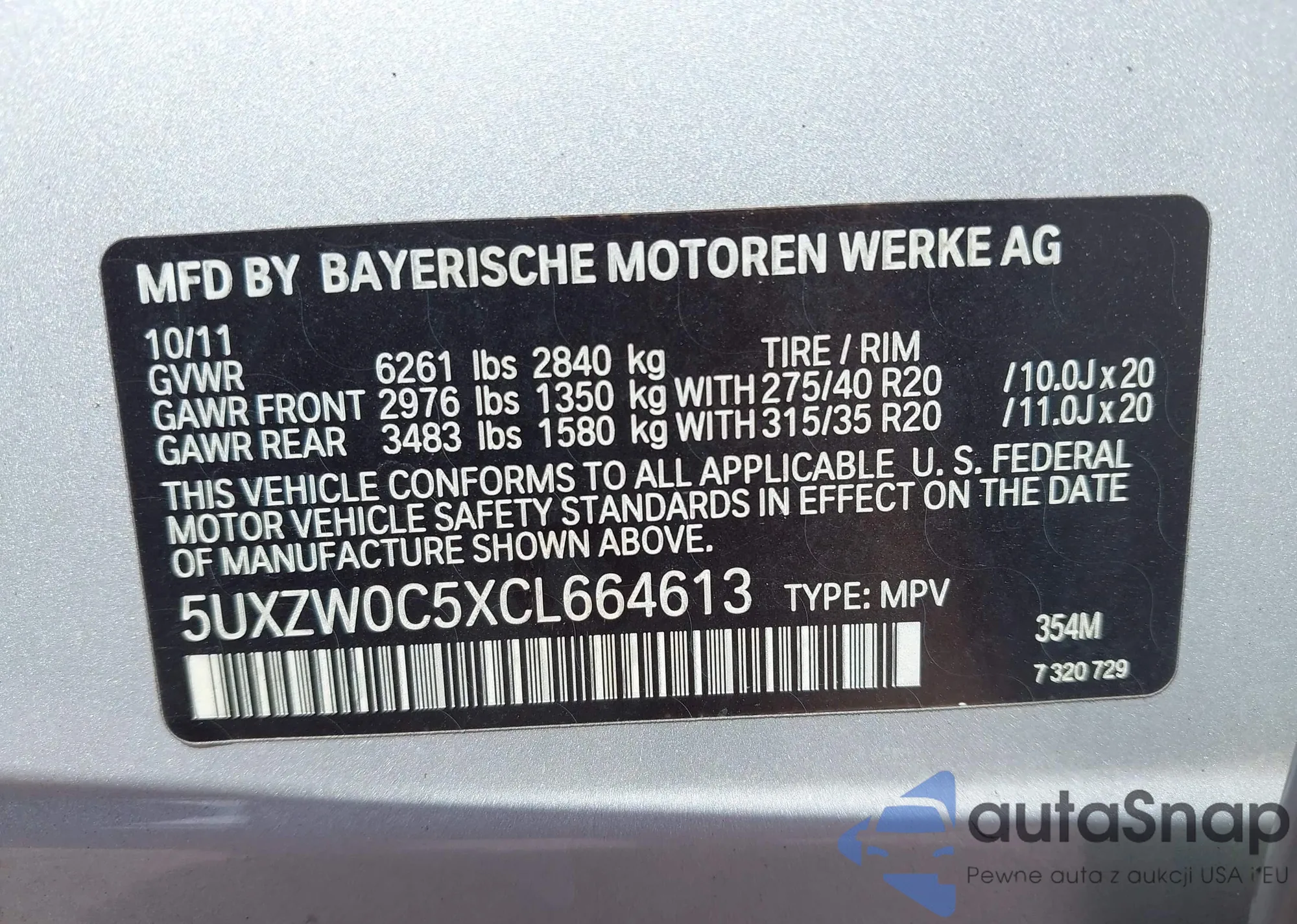 VIN: 5UXZW0C5XCL664613
