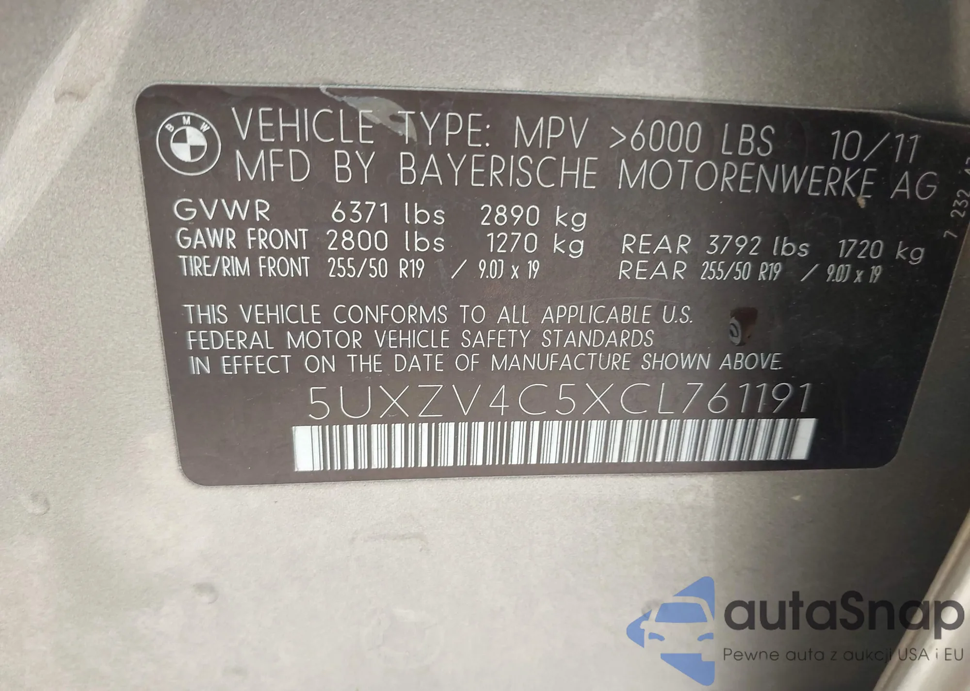 VIN: 5UXZV4C5XCL761191