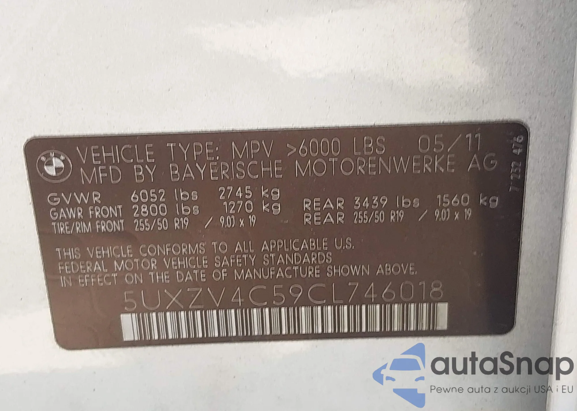 VIN: 5UXZV4C59CL746018