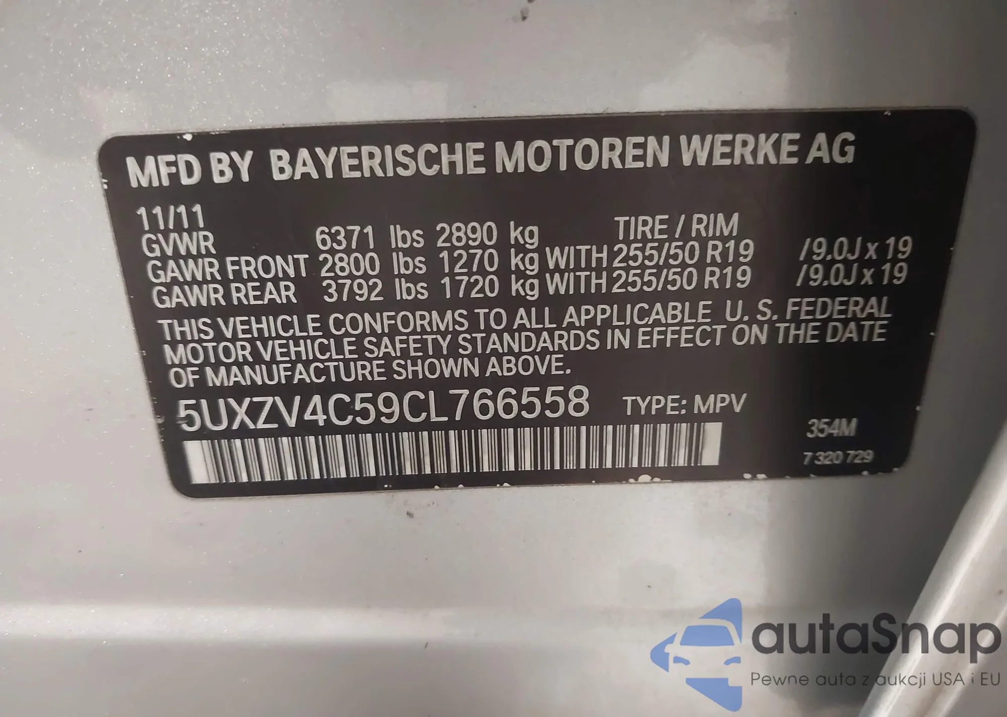 VIN: 5UXZV4C59CL766558