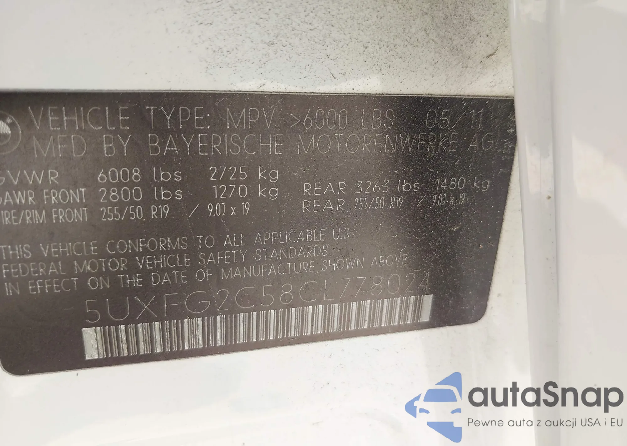 VIN: 5UXFG2C58CL778024