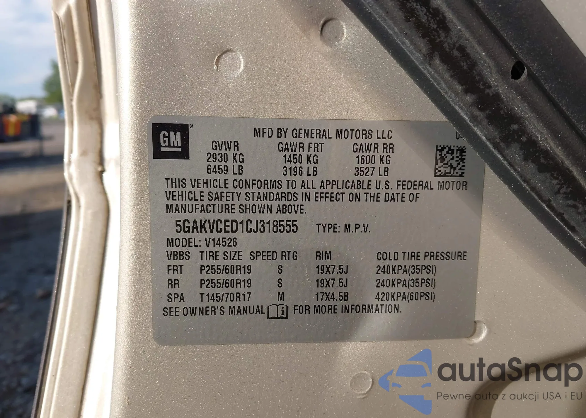 • VIN: 5GAKVCED1CJ318555