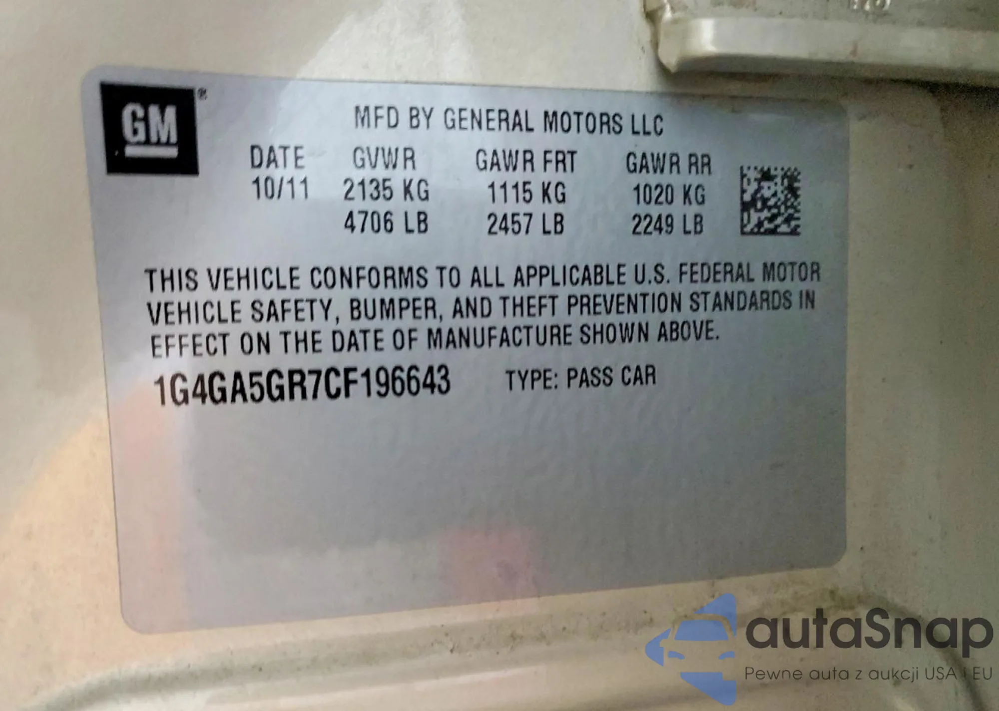 VIN: 1G4GA5GR7CF196643