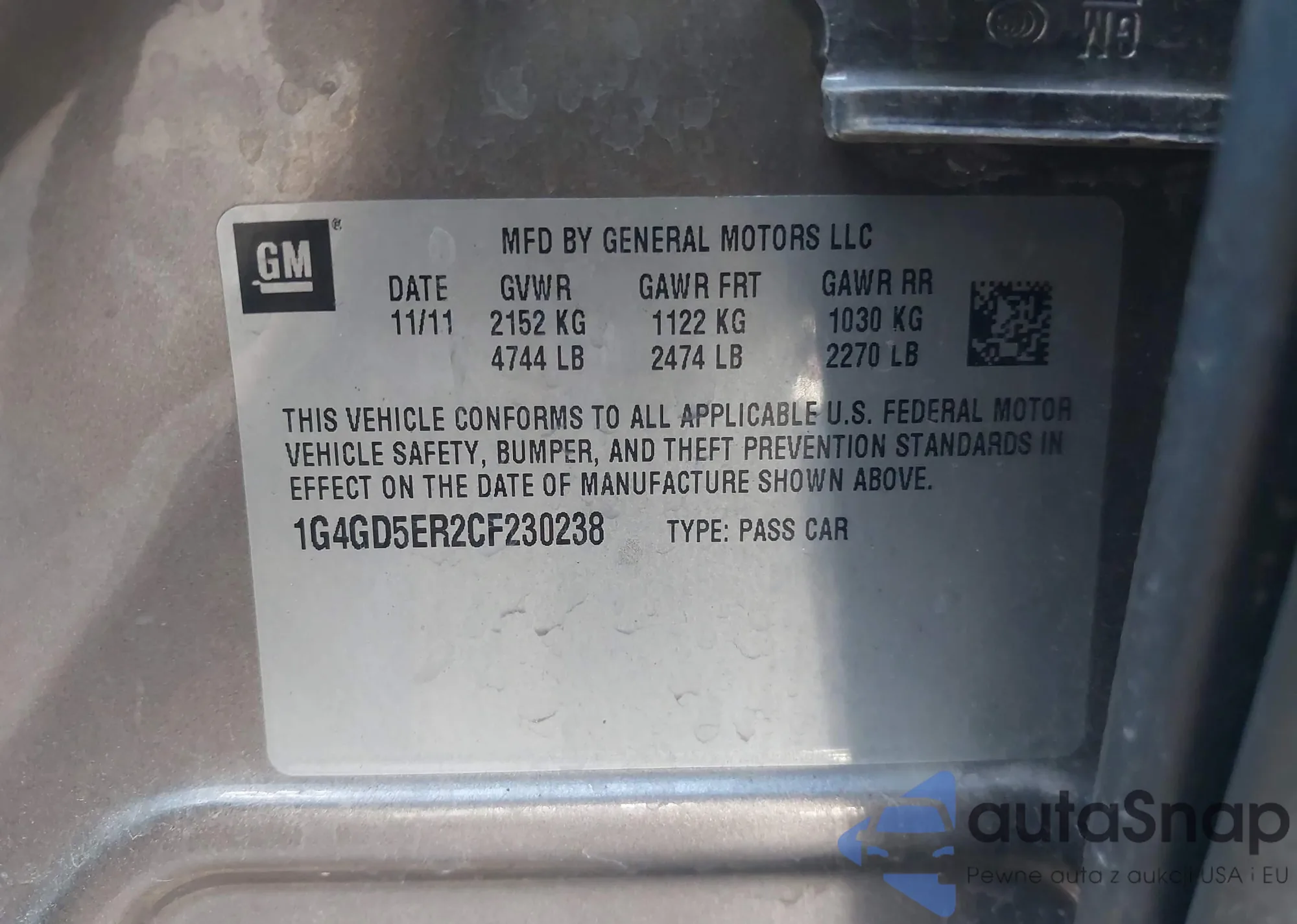 VIN: 1G4GD5ER2CF230238