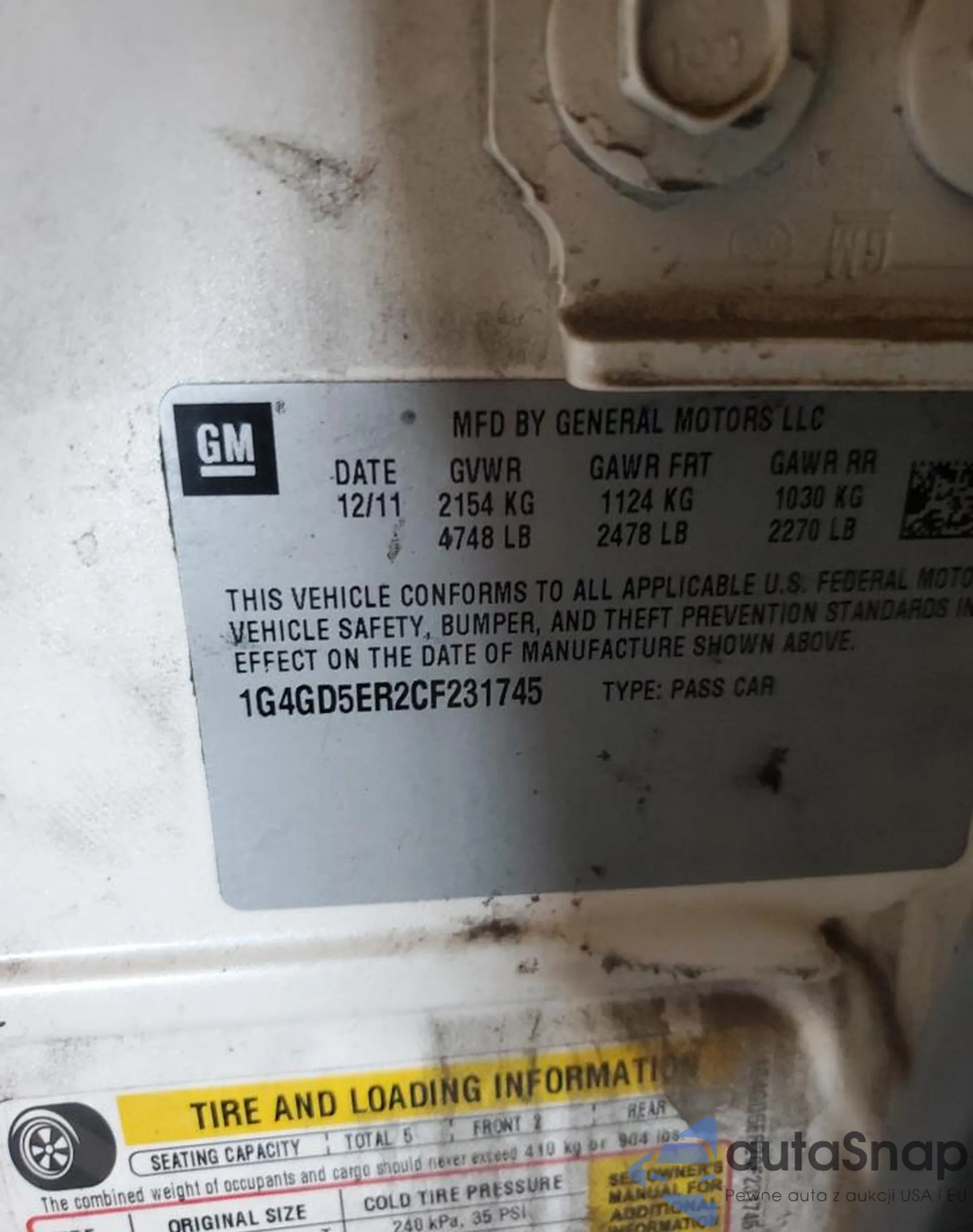 The car Buick LaCrosse 2012 (VIN 1G4GD5ER2CF231745) has not been auctioned before. The documents are clean, and the mileage matches or is below the market average. Sold by an insurance company – we recommend purchase. Delivery to the port will take approx. 6–8 weeks.