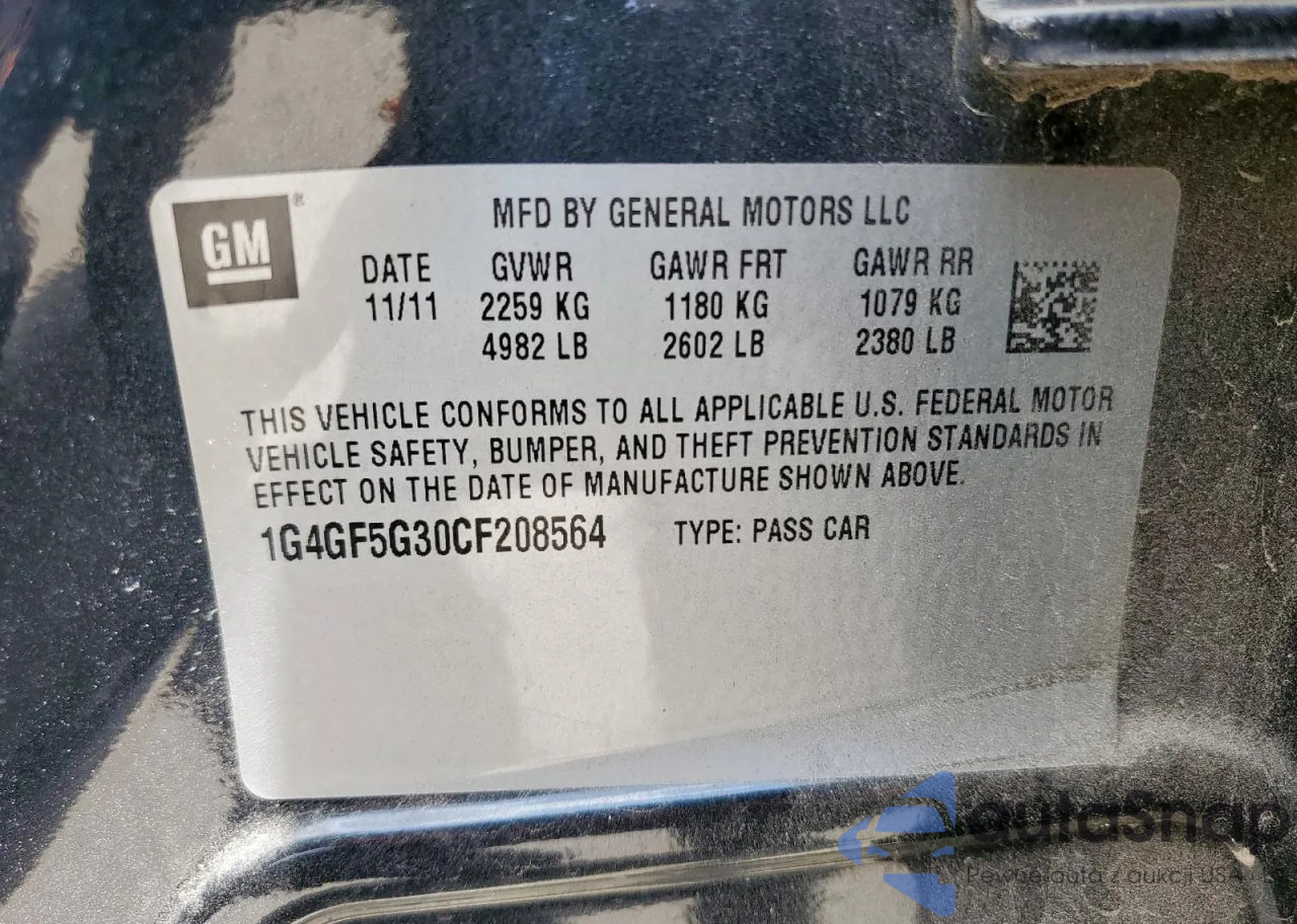 VIN: 1G4GF5G30CF208564
