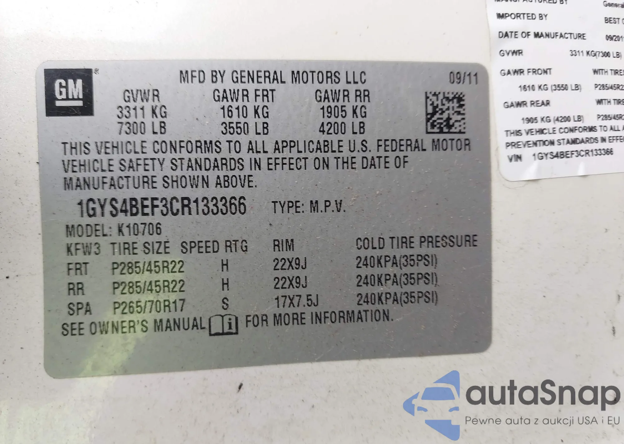 VIN: 1GYS4BEF3CR133366