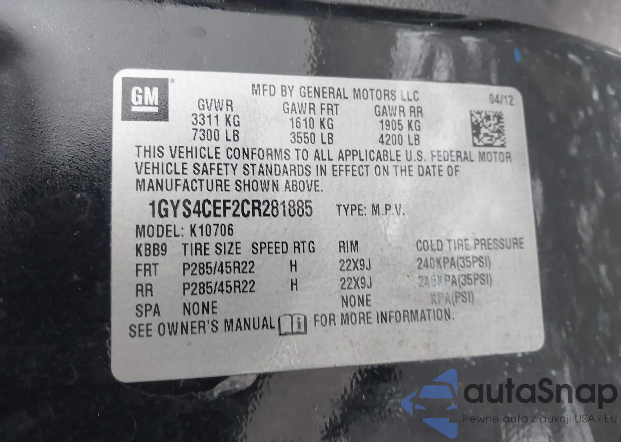 VIN: 1GYS4CEF2CR281885