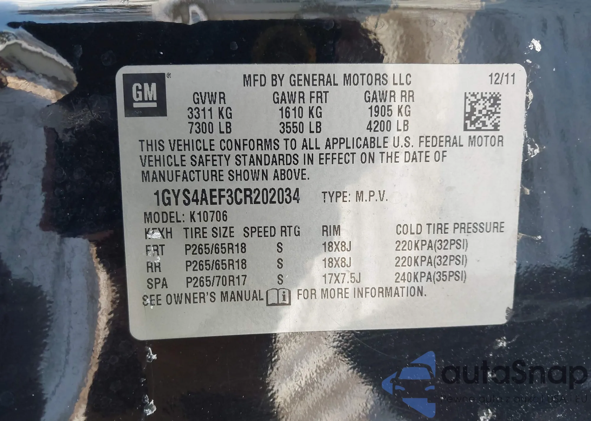 VIN: 1GYS4AEF3CR202034