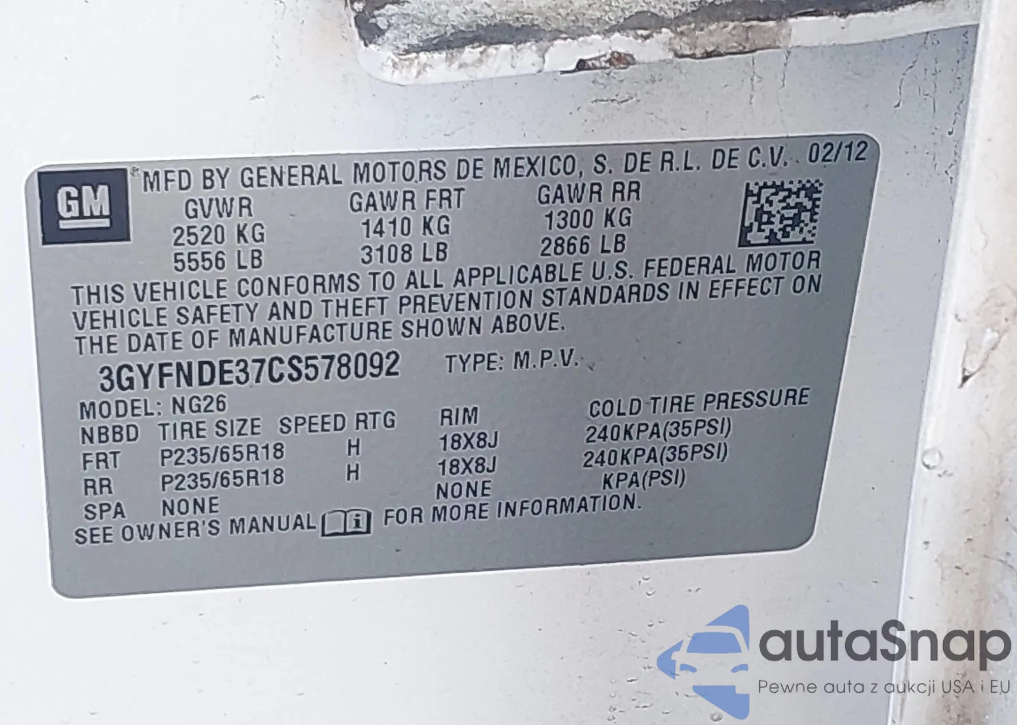 • VIN: 3GYFNDE37CS578092
