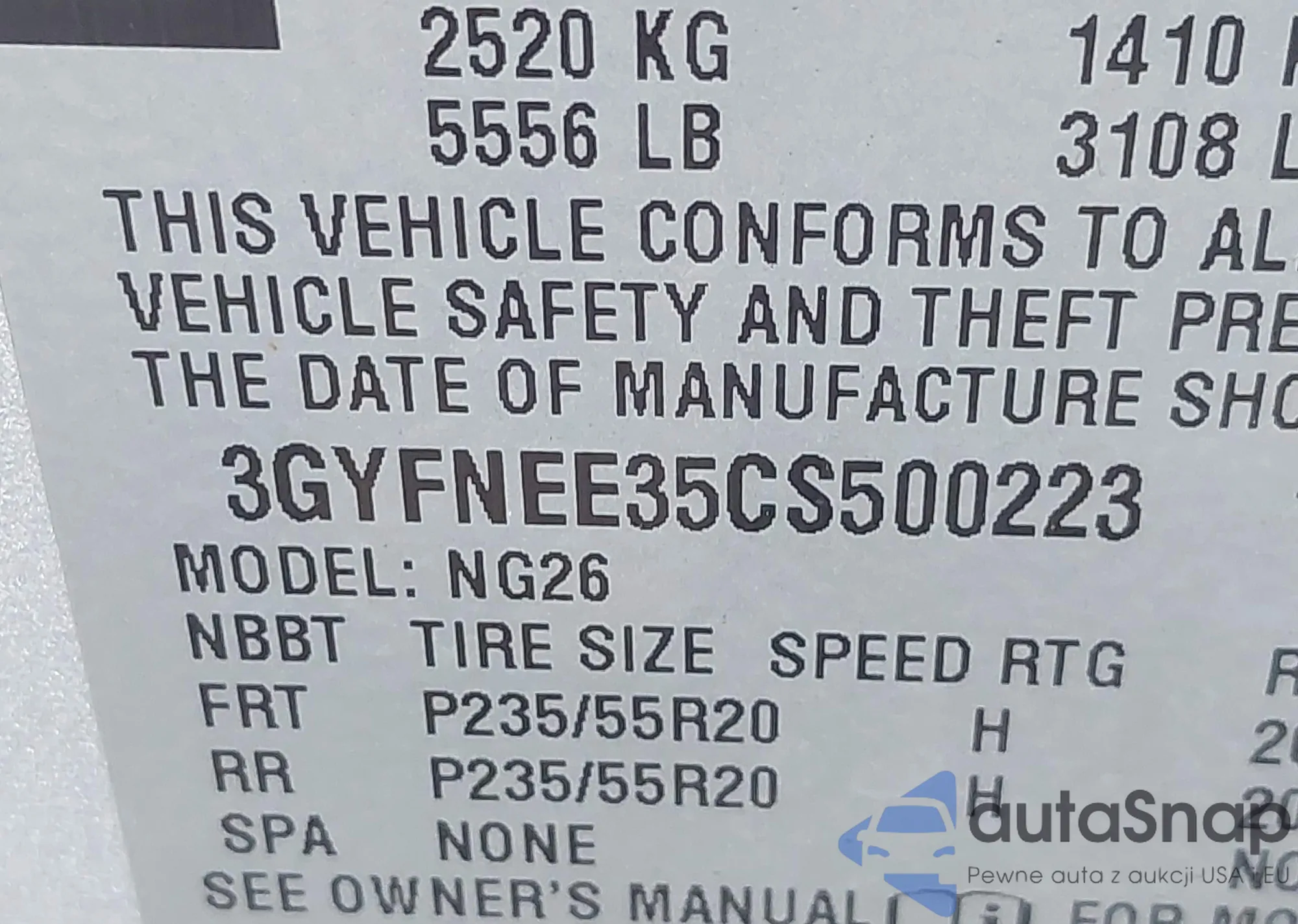 VIN: 3GYFNEE35CS500223