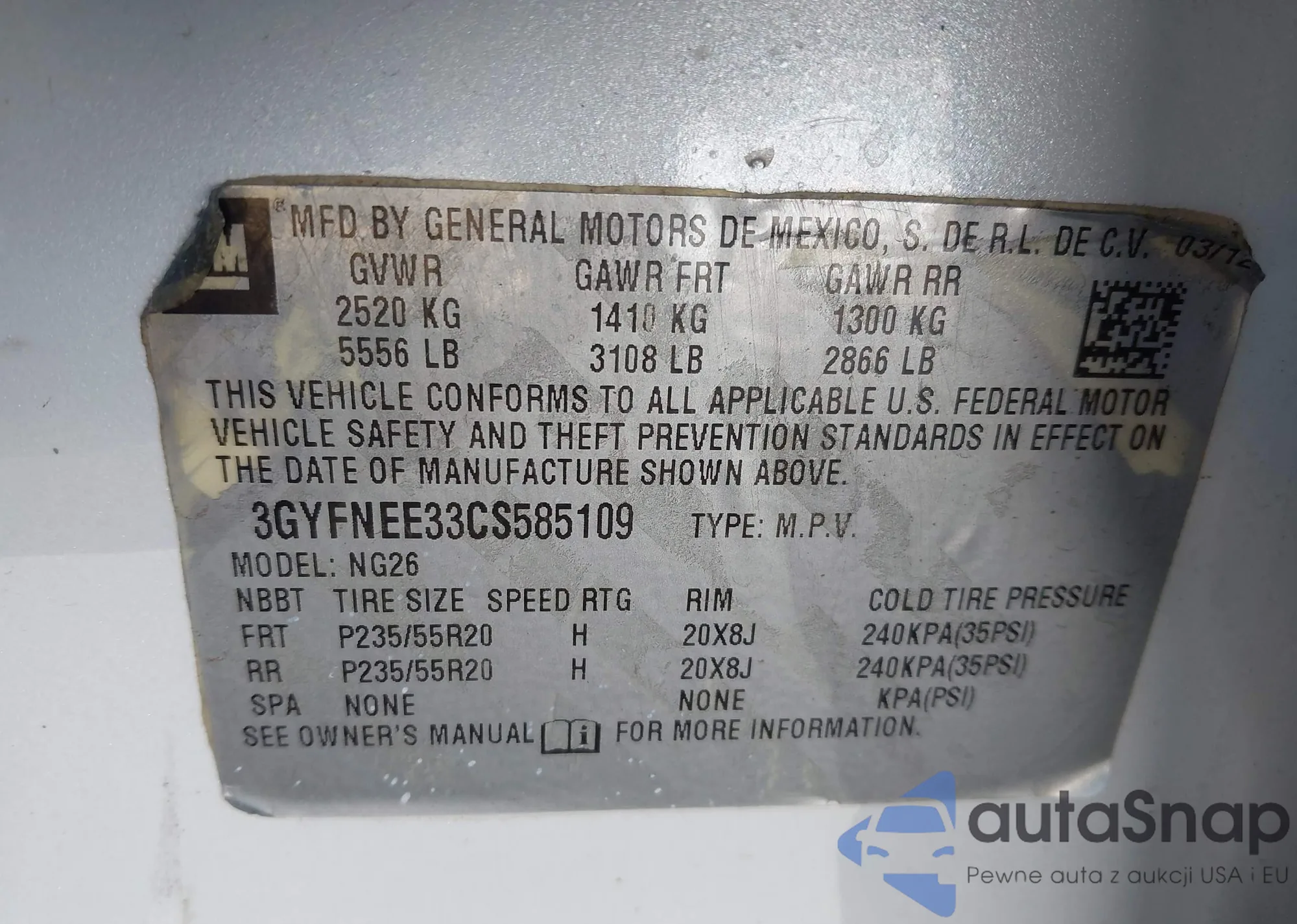 VIN: 3GYFNEE33CS585109