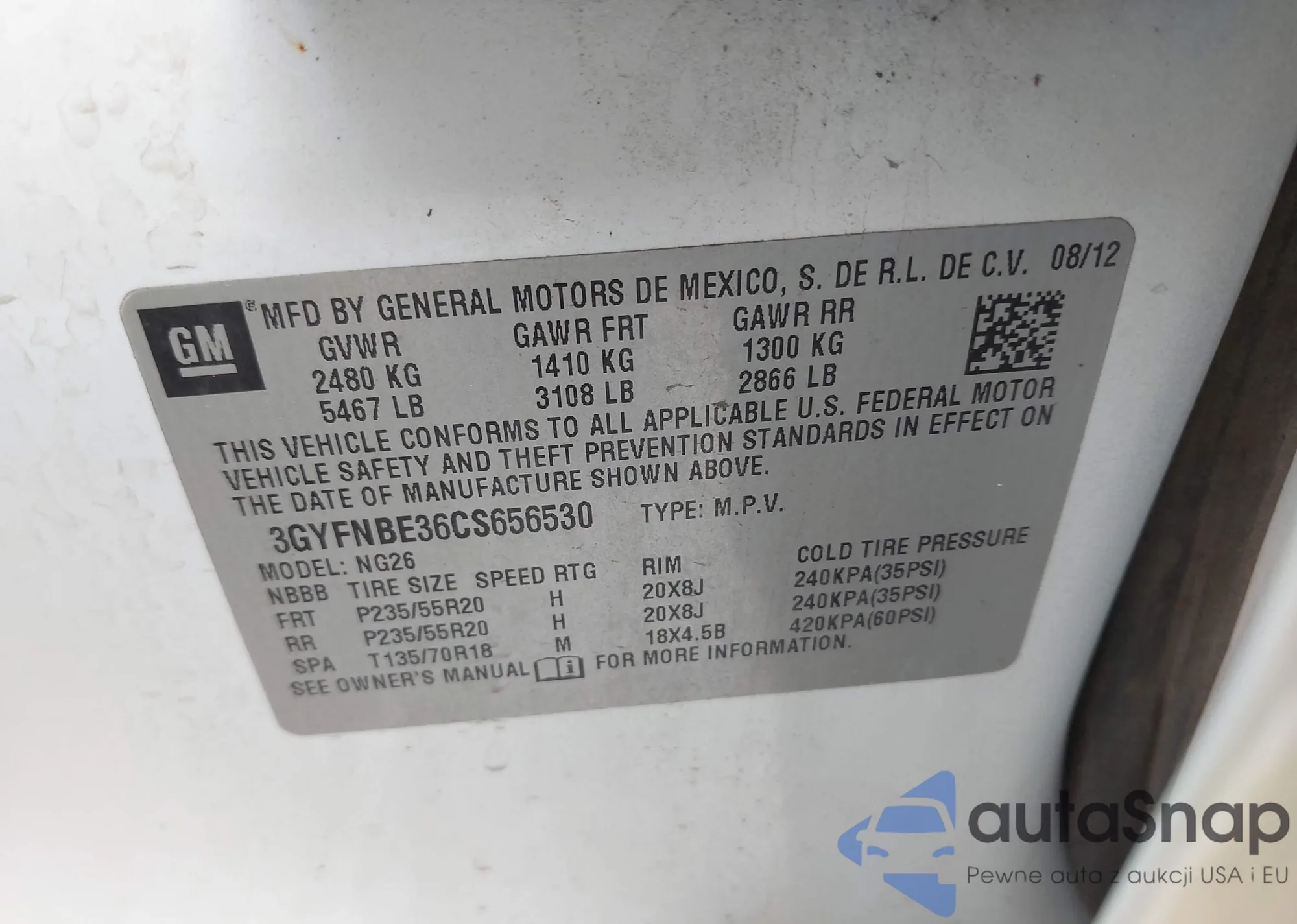 • VIN: 3GYFNBE36CS656530