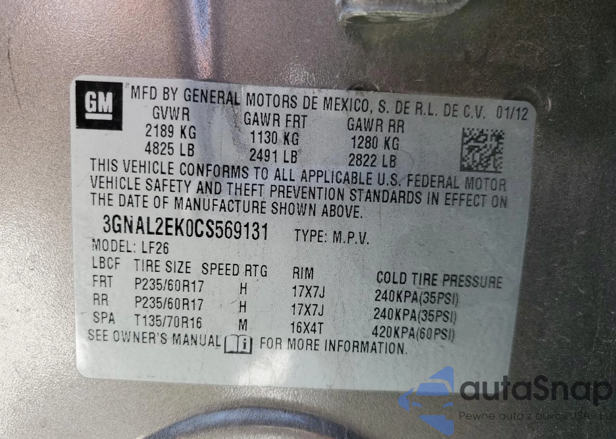 VIN: 3GNAL2EK0CS569131