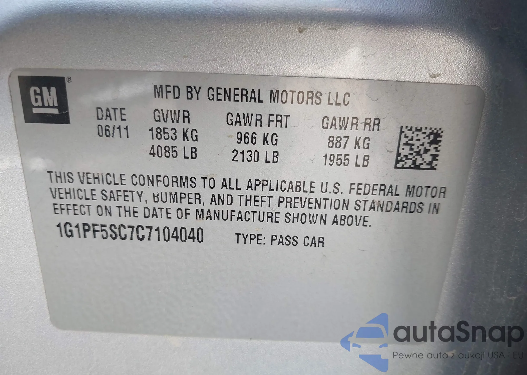 VIN: 1G1PF5SC7C7104040