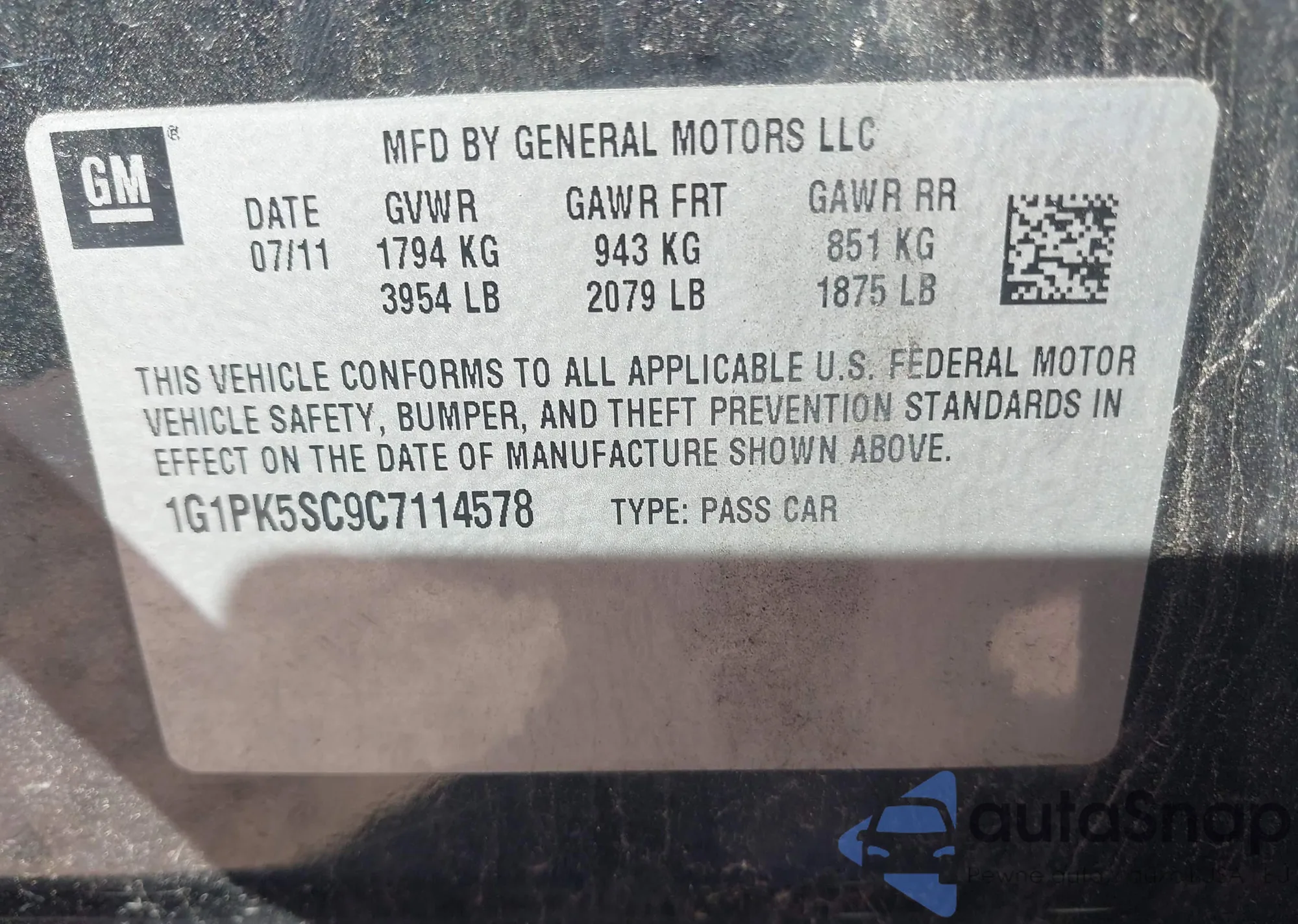 VIN: 1G1PK5SC9C7114578