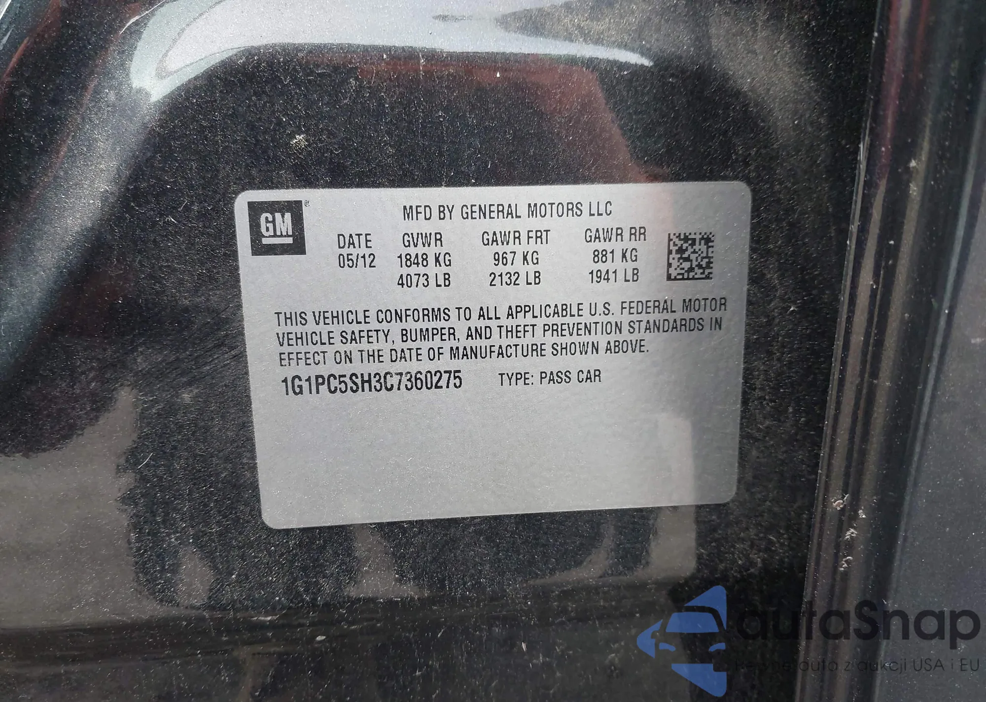 VIN: 1G1PC5SH3C7360275