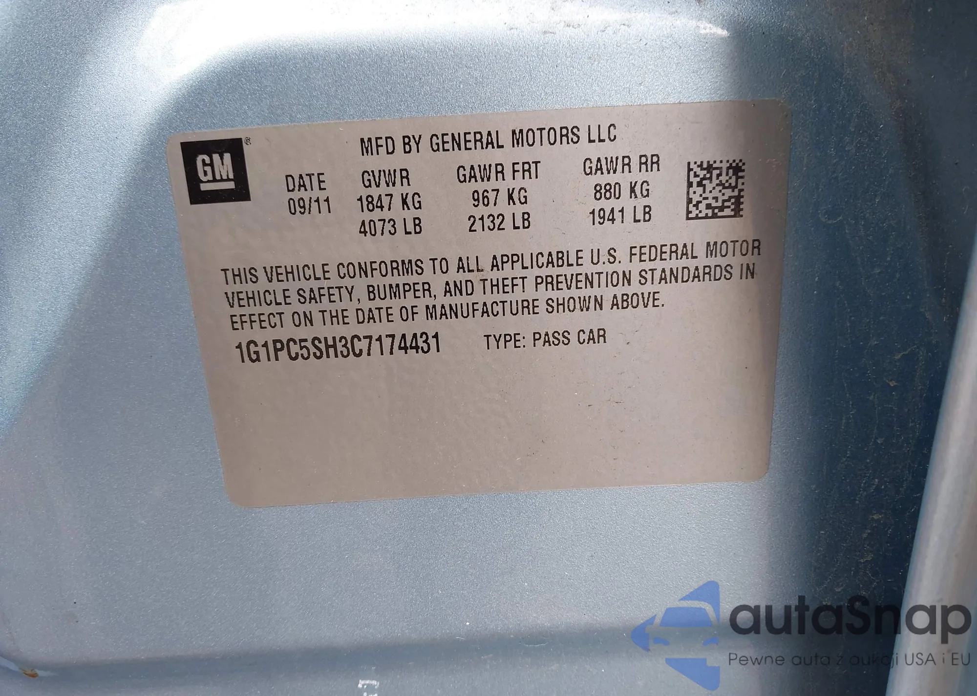VIN: 1G1PC5SH3C7174431
