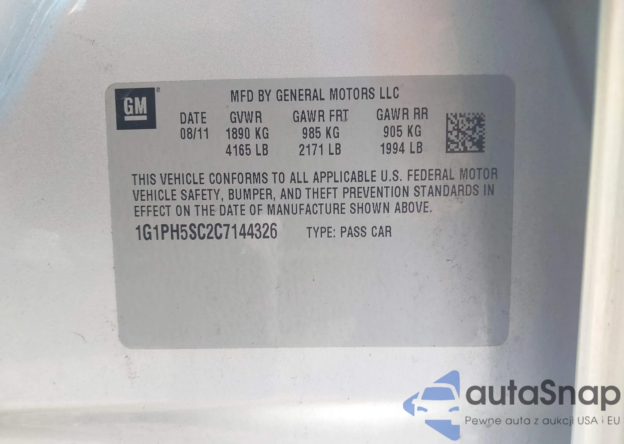 VIN: 1G1PH5SC2C7144326